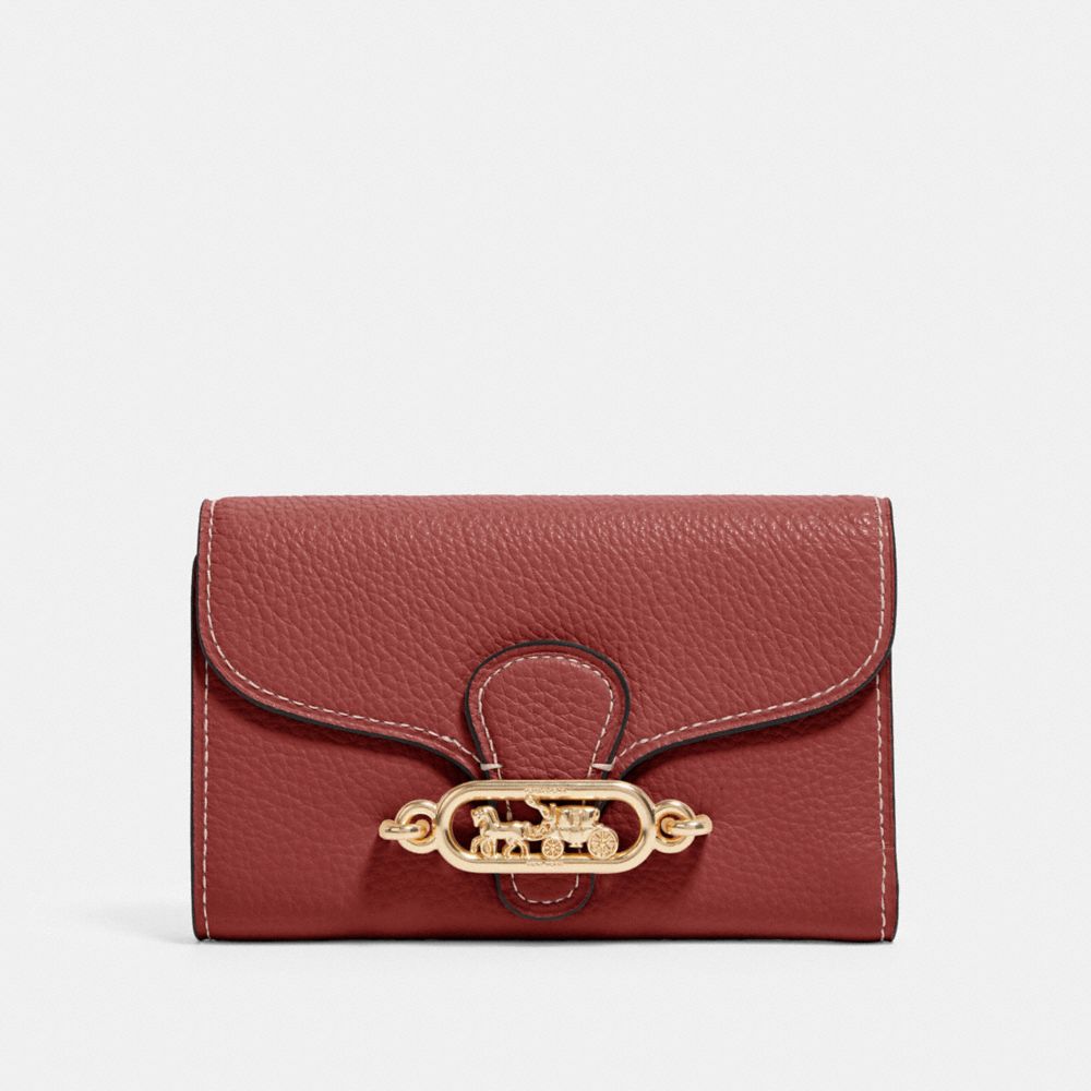 Refined pebble leather| Four credit card slots| Bill compartment| Inside zip coin pocket| Snap closure| Outside open pocket| 6" (L) x 3 3/4" (H) x 3/4" (W)