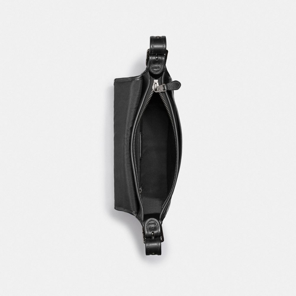 Glove calf leather| Inside zip and open pockets| Flap and zip closures, fabric lining| Outside slip pocket| Adjustable strap with 20" drop for shoulder and crossbody wear| 11 1/2" (L) x 8 3/4" (H) x 4 1/4" (W)