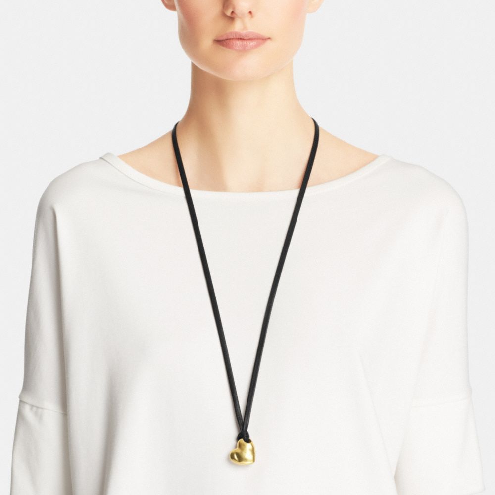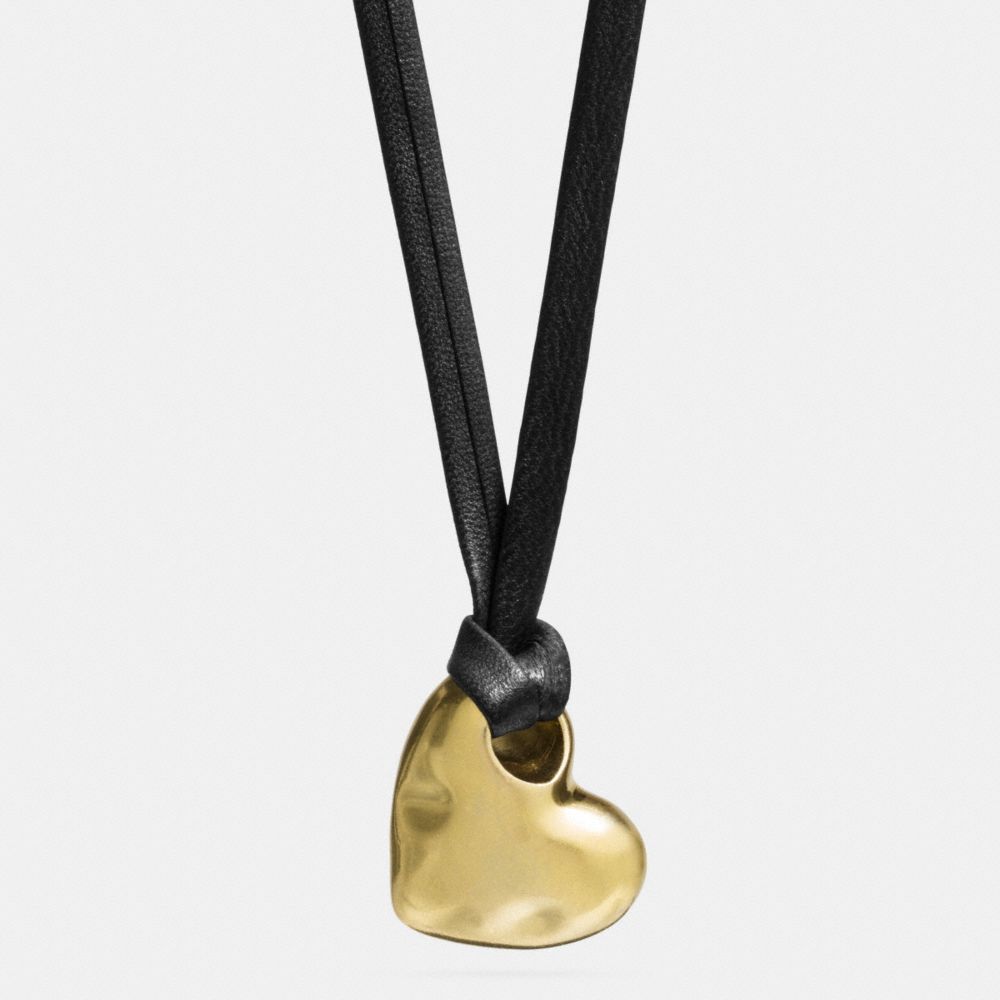 LONG LEATHER SCULPTED HEART PENDANT NECKLACE