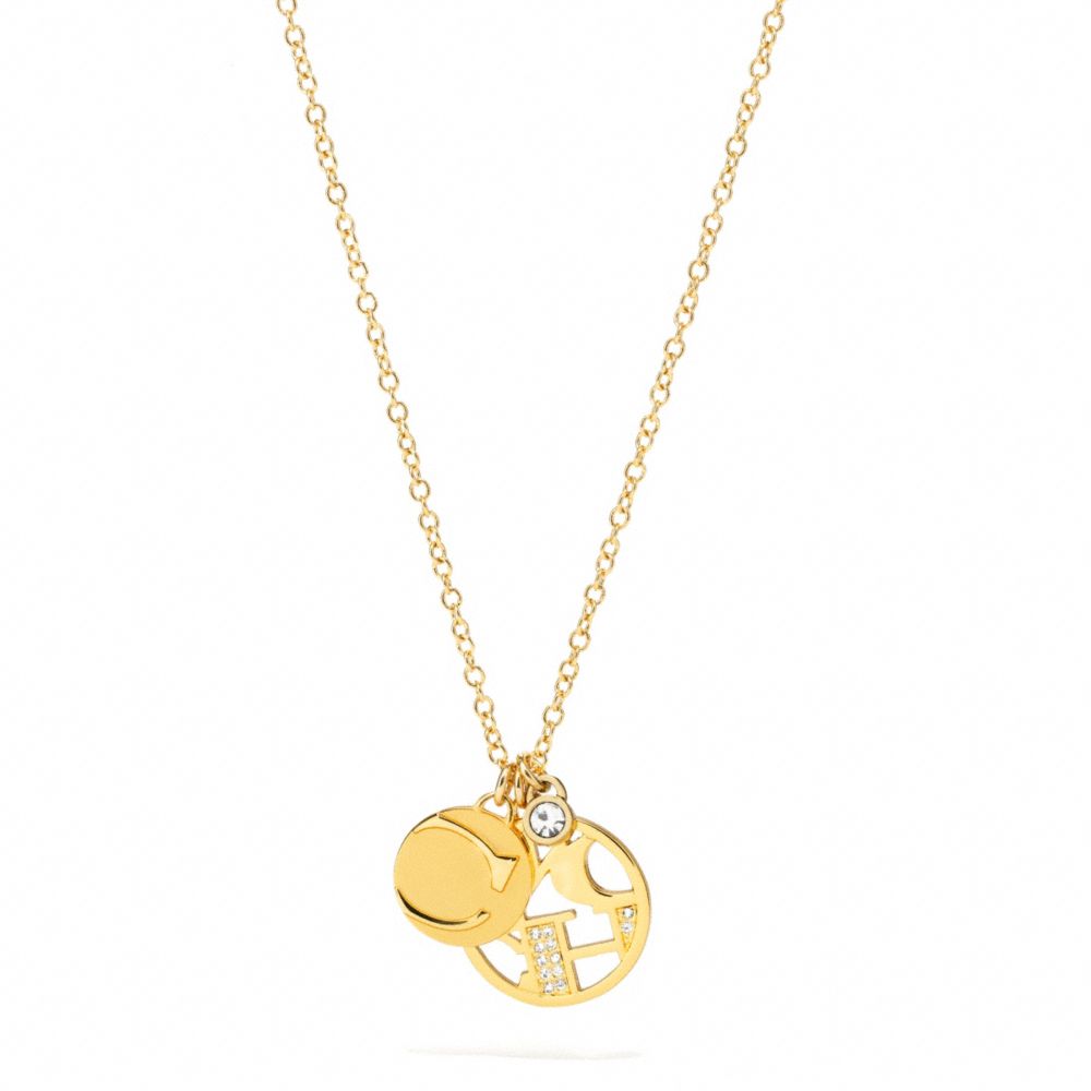 PAVE COACH LETTER TRIPLE CHARM NECK