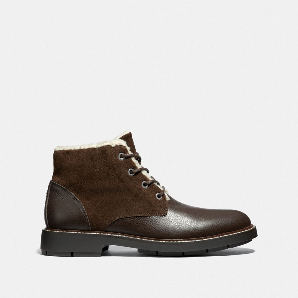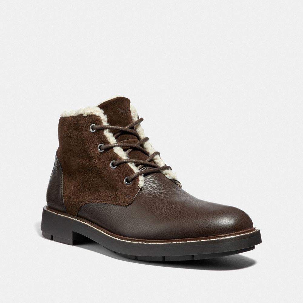 Leather and suede upper| Man-made leather and shearling lining| Rubber outsole| Lace-up closure