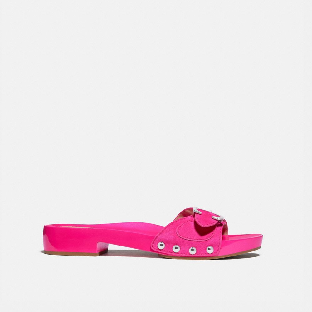 Suede upper| Man-made leather lining, wood footbed| Rubber outsole| Slip on| 1 1/4" heel