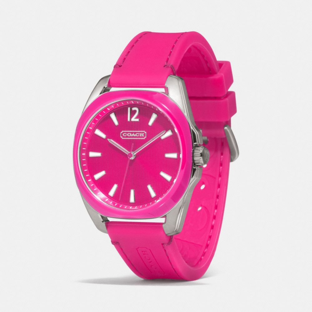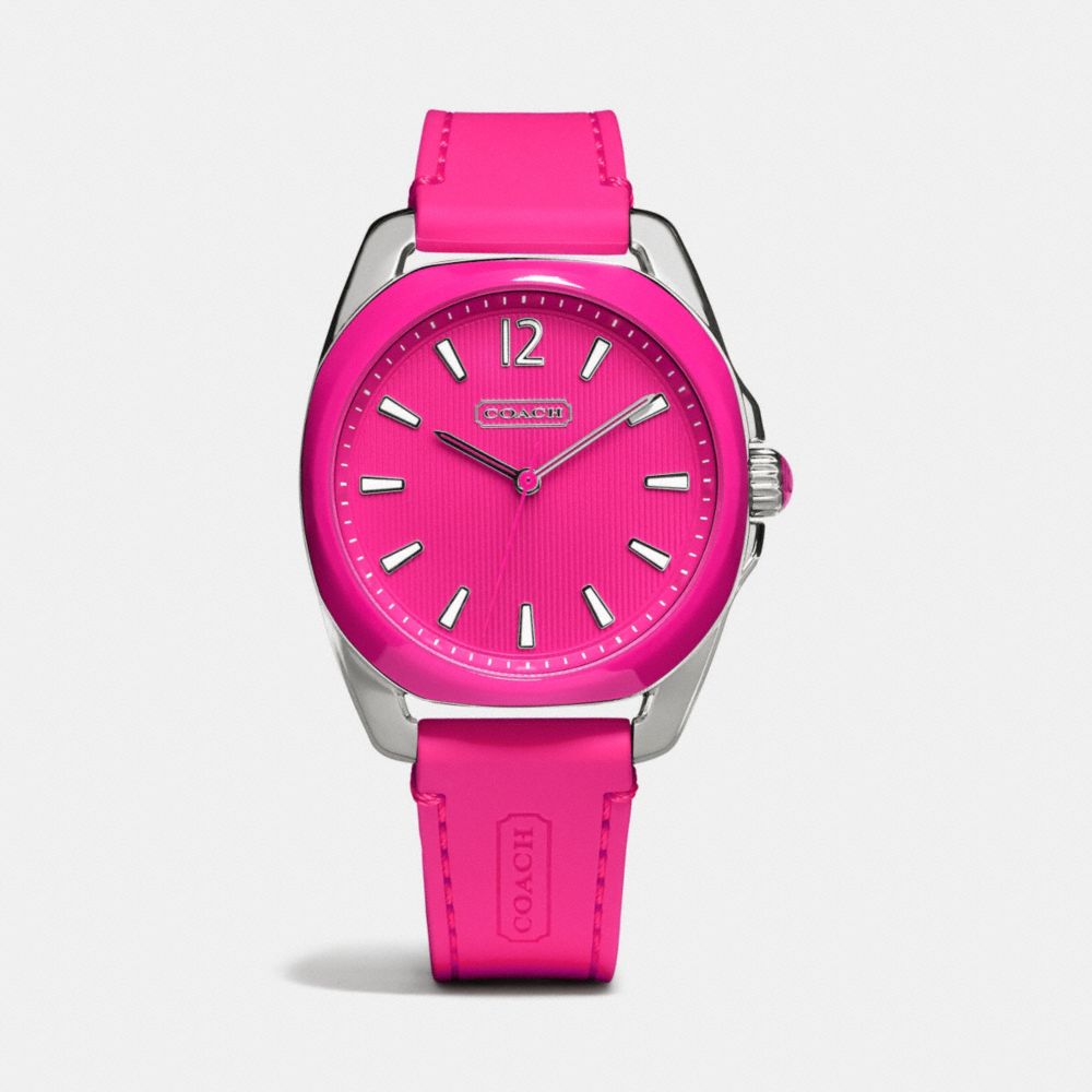 Details| | | Stainless steel case and plastic bezel with rubber strap| Mineral crystal| Quartz movement| Buckle closure| 38mm case| Water-resistant to 99 feet| This is a signature product