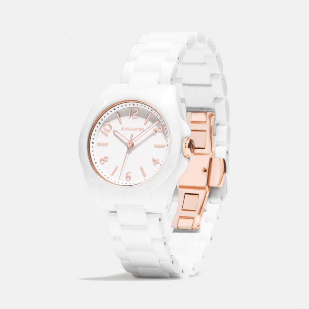 Details| | | Ceramic case and bracelet| Approx. band length: 10.5mm| Approx. case diameter: 32mm | Deployment closure| Quartz movement| Mineral crystal| Water-resistant to 99 feet