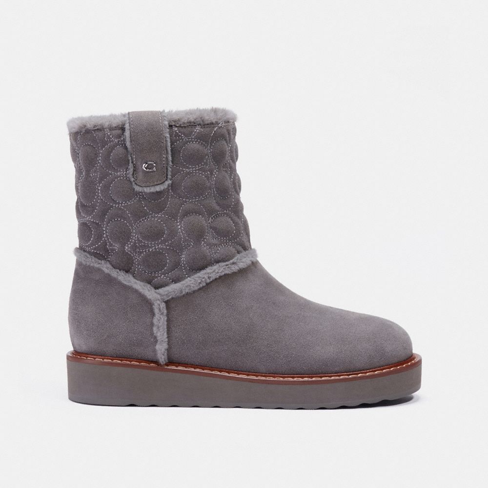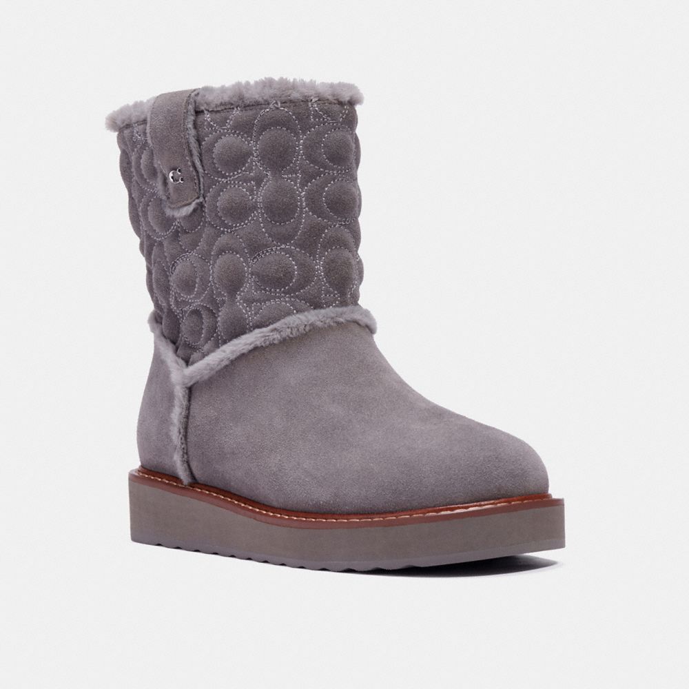 Suede and fabric upper| Faux fur lining and footbed| Rubber outsole| Pull on| Shaft: 6 1/4" height, 13 1/2" circumference| 1 1/4" heel