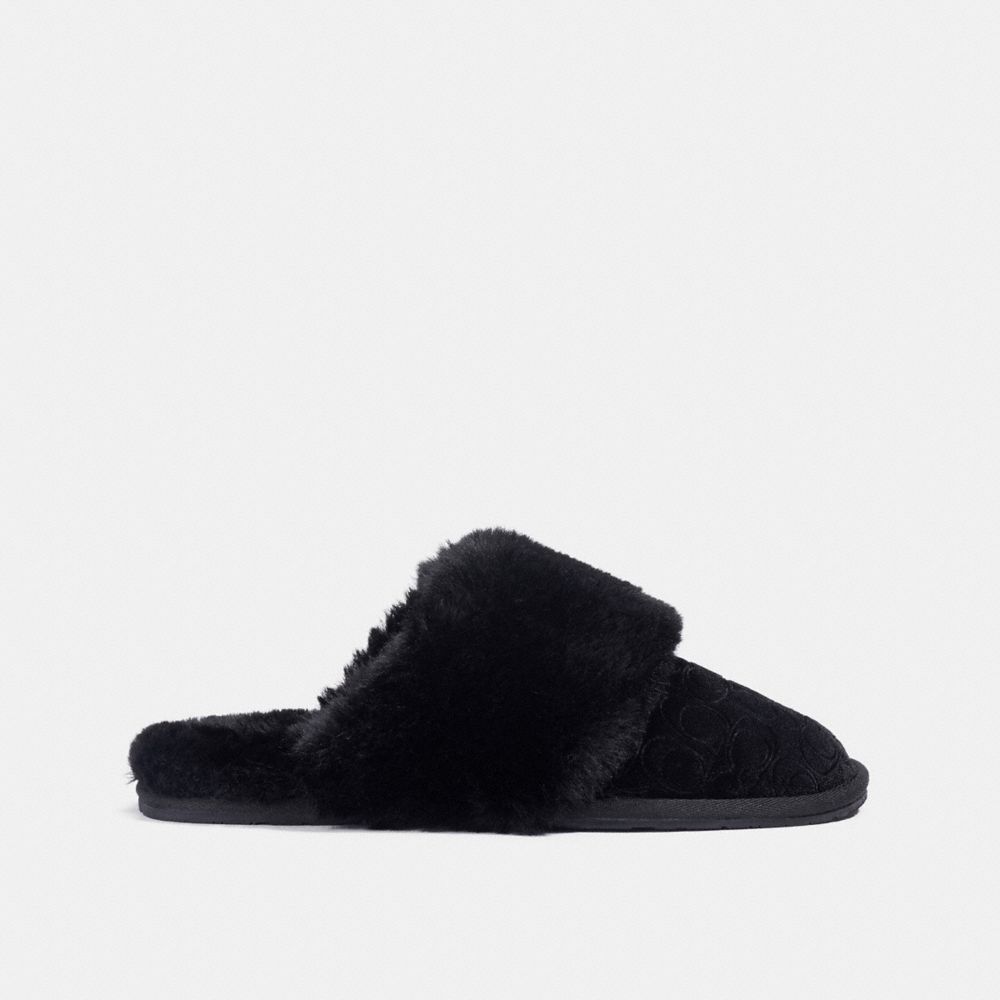 Signature velvet and faux fur upper| Faux fur lining and footbed| Rubber outsole| Slip on
