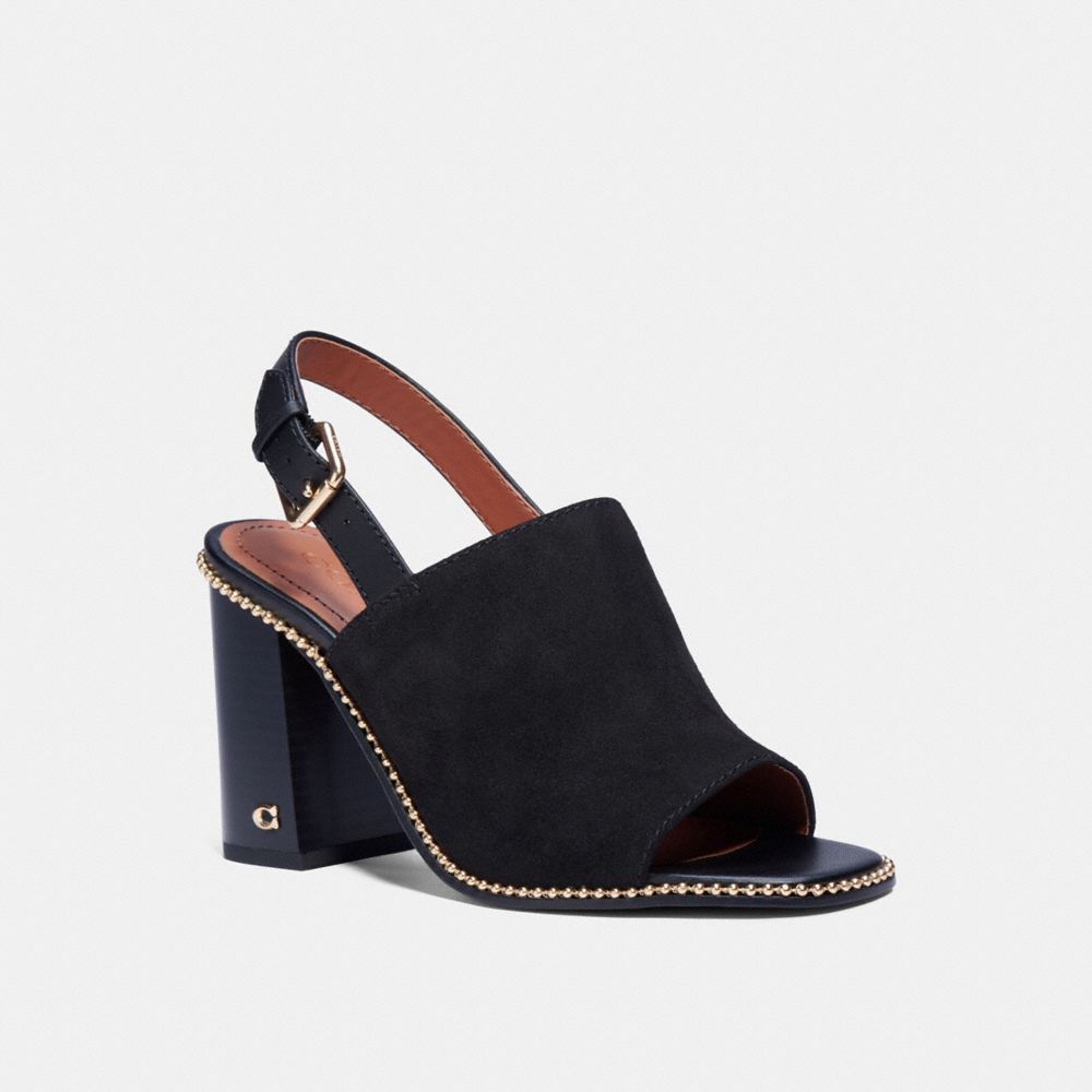 Suede and leather upper| Man-made leather lining and footbed| Rubber outsole| Buckle closure| 3 1/4" heel