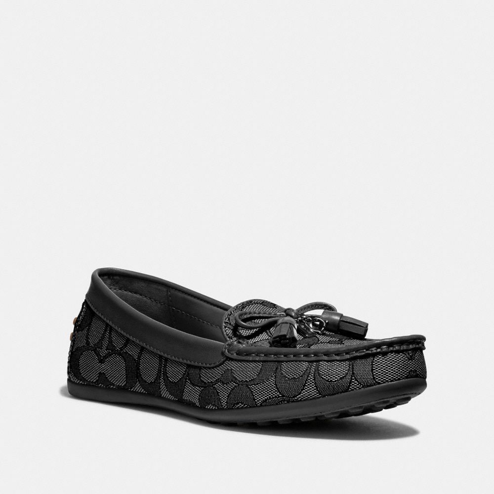| Signature jacquard and leather upper| Polyurethane lining and footbed| Rubber outsole| Slip on