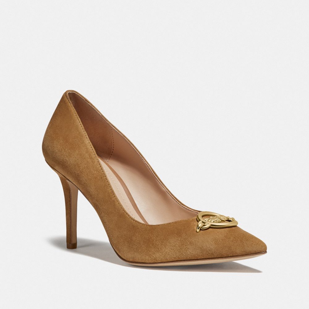 Suede upper| Man-made leather lining and footbed| Rubber outsole| Slip on| 3 1/2" heel