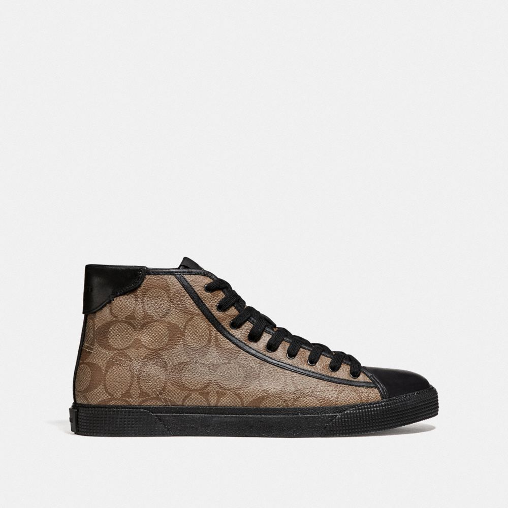 Signature coated canvas and leather upper| Fabric lining and footbed| Rubber outsole| Lace-up closure