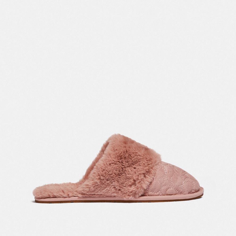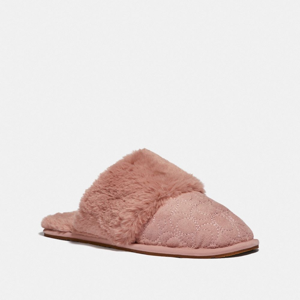 Signature suede and faux fur upper| Faux fur lining and footbed| Rubber outsole| Slip on