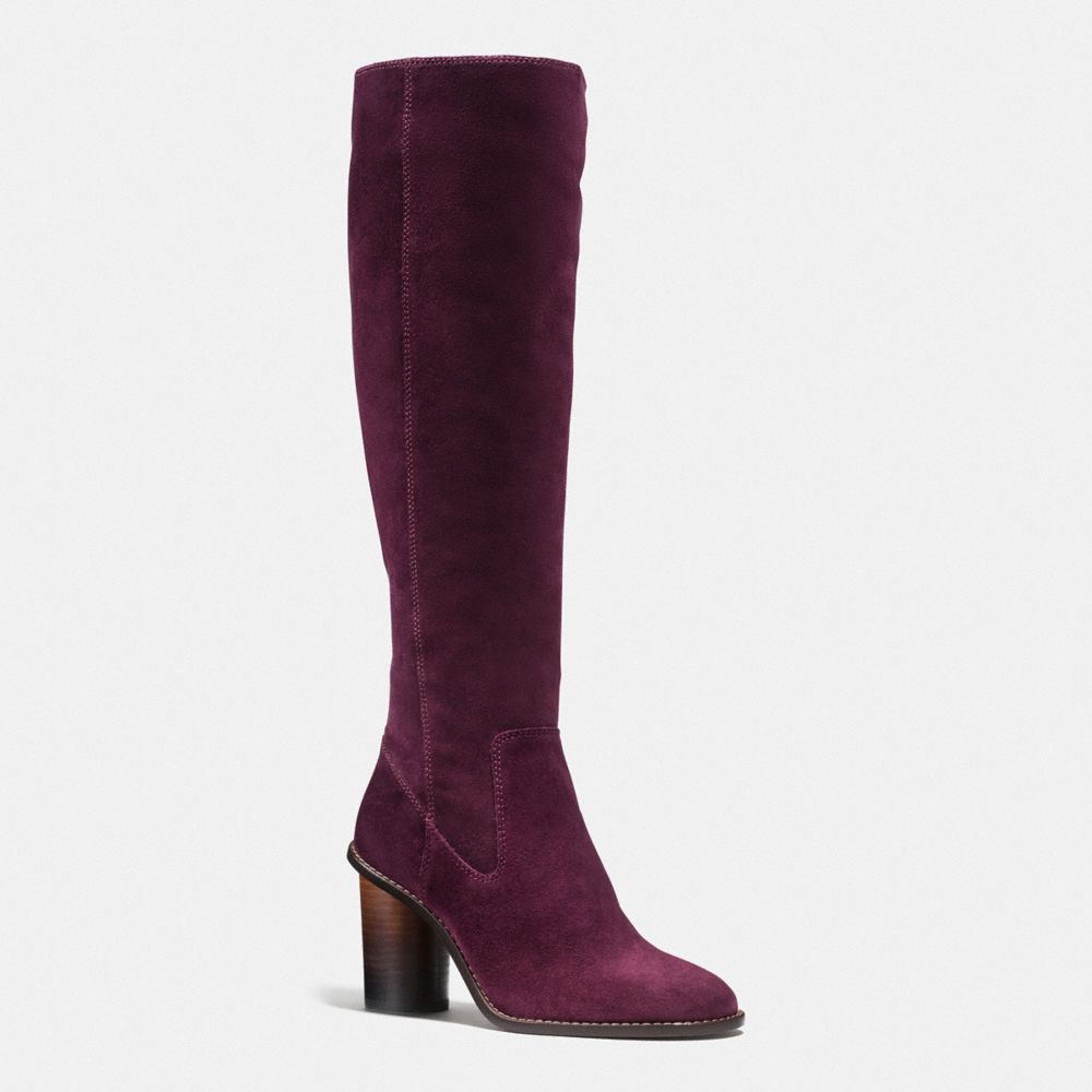 Suede upper| Leather lining and footbed| Leather outsole| Inside zip closure| 3" heel| Shaft: 16" height, 14 1/2" circumference