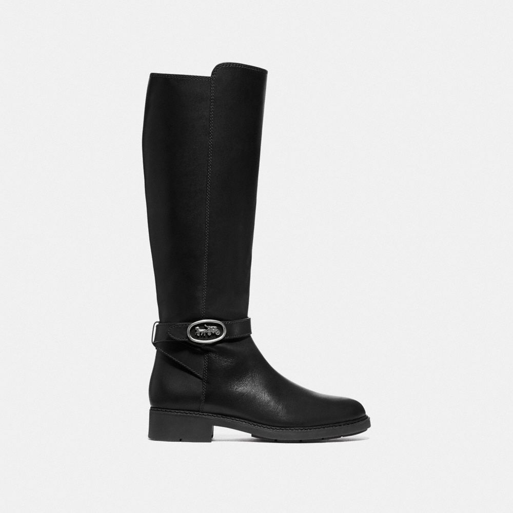 Leather upper| Man-made leather lining and footbed| Rubber outsole| Zip closure| Shaft: 14 1/2" height, 15" circumference| 3/4" heel