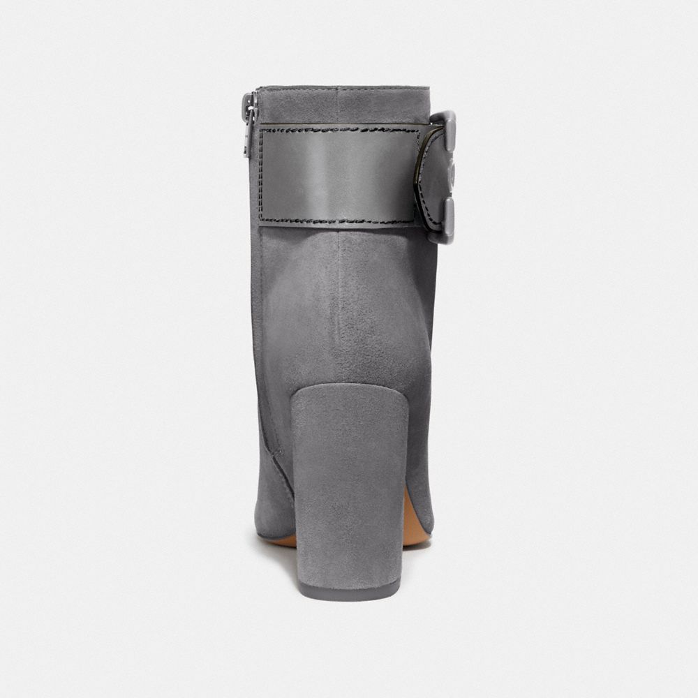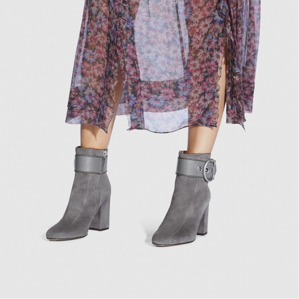 Suede upper| Man-made leather lining and footbed| Rubber outsole| Zip closure| Shaft: 4" height, 10" circumference| 3 1/4" heel