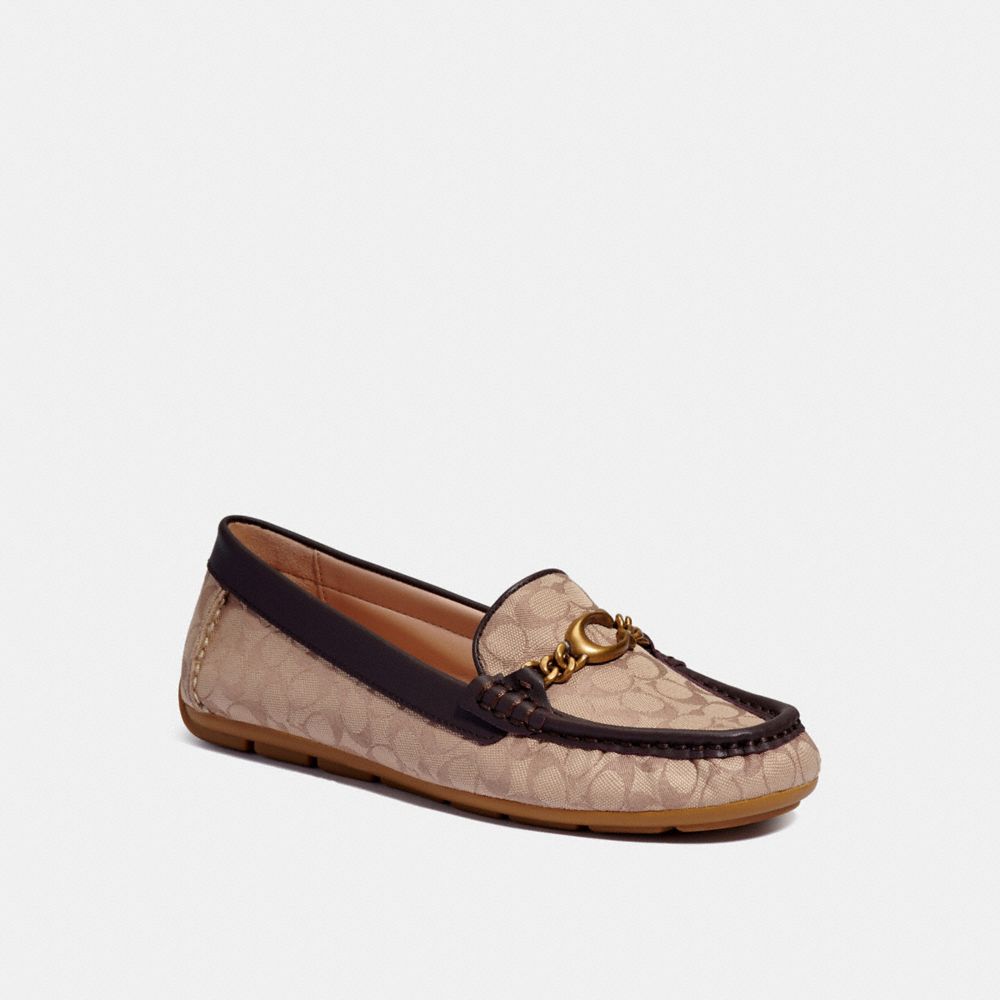 Signature jacquard and leather upper| Man-made leather lining, leather footbed| Rubber outsole| Slip on