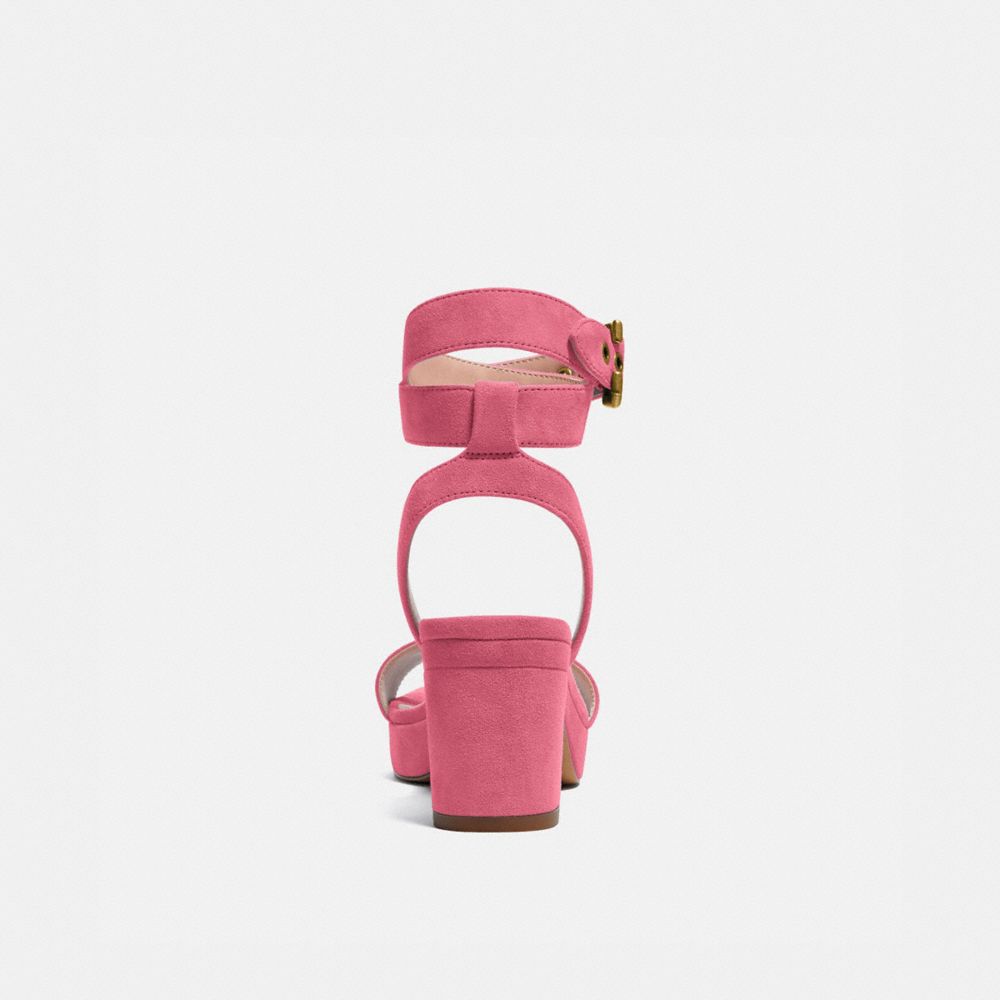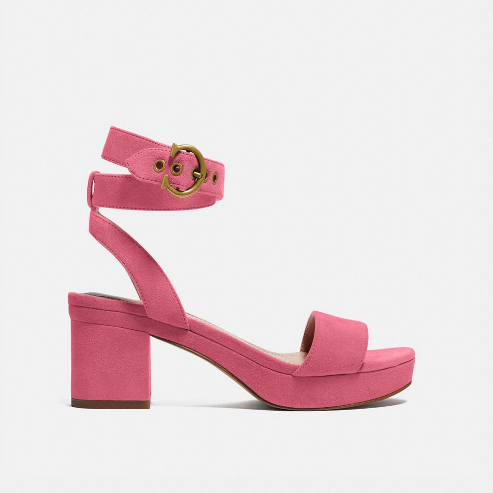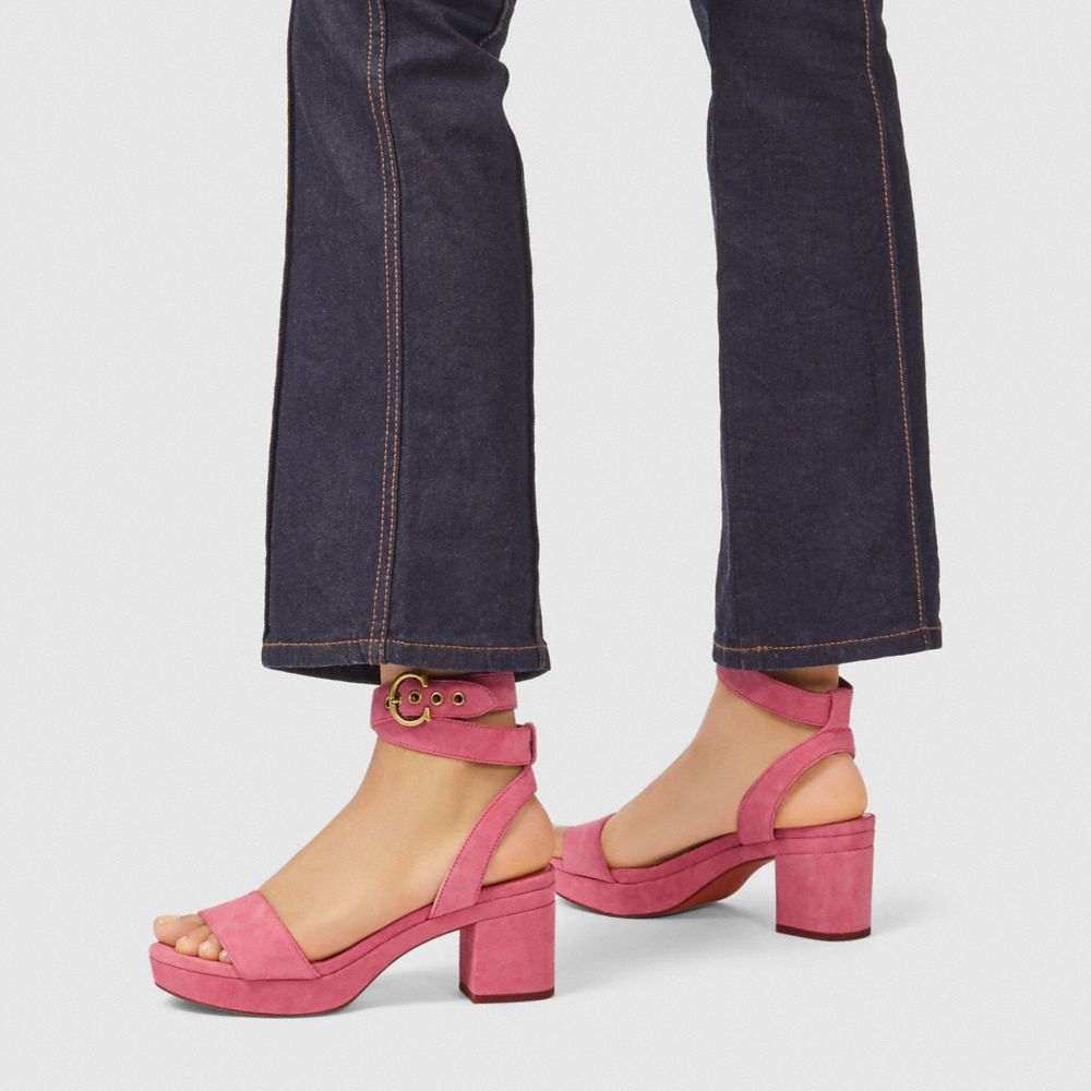 Suede upper| Man-made leather lining and footbed| Rubber outsole| Buckle closure| 2 1/4" heel, 1" platform