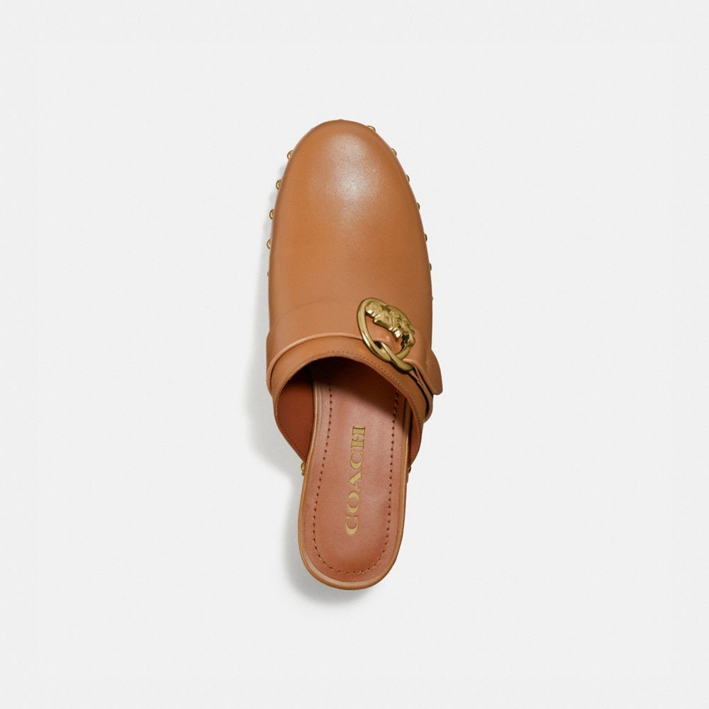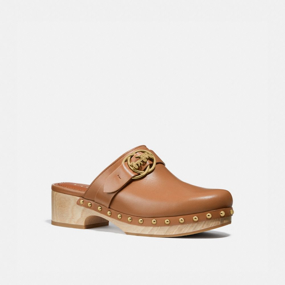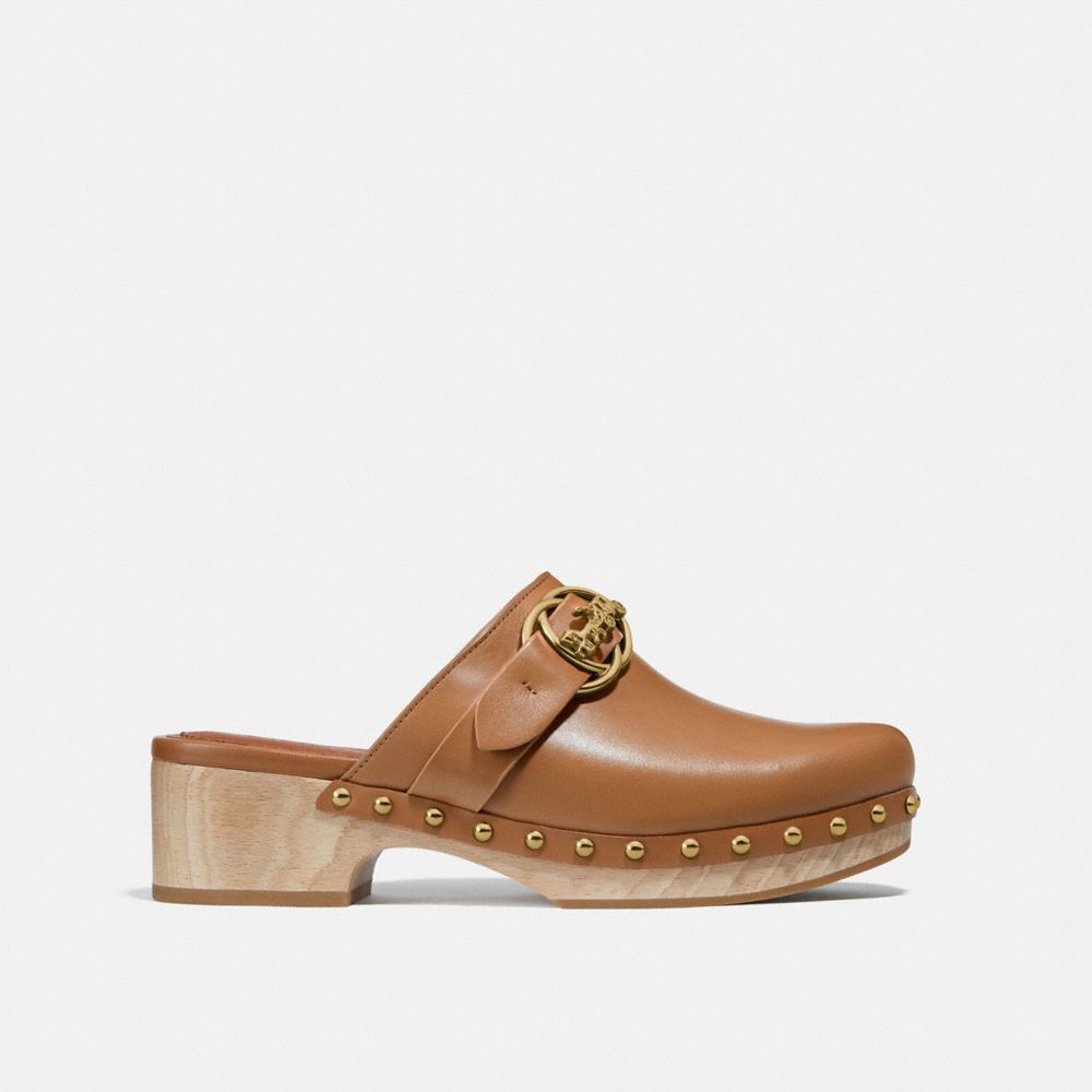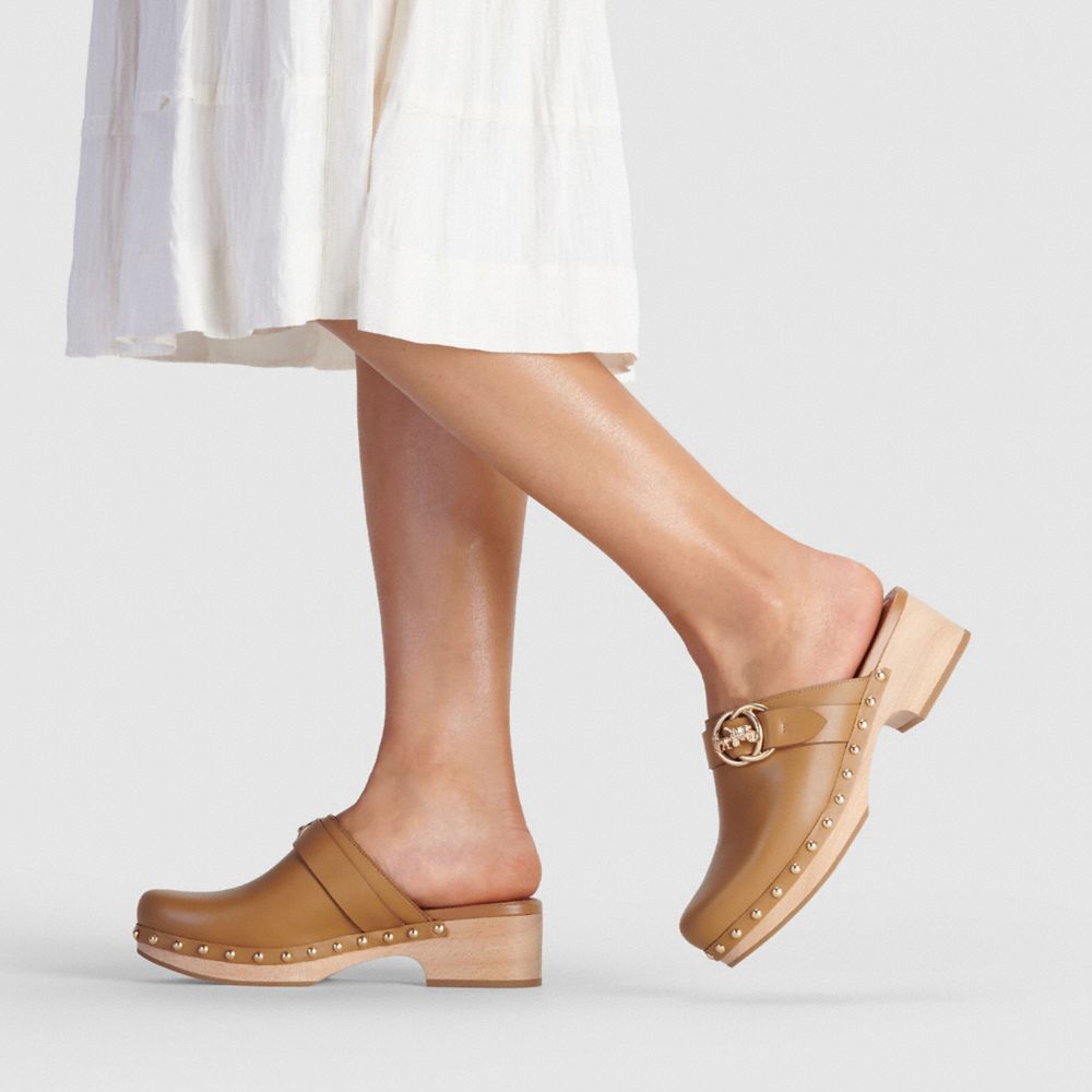 Leather upper| Man-made leather lining and footbed| Rubber outsole| Slip on| 1" heel