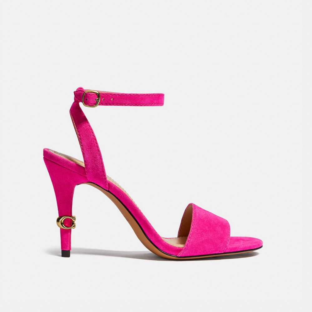 Suede upper| Man-made leather lining and footbed| Rubber outsole| Buckle closure| 3 1/2" heel