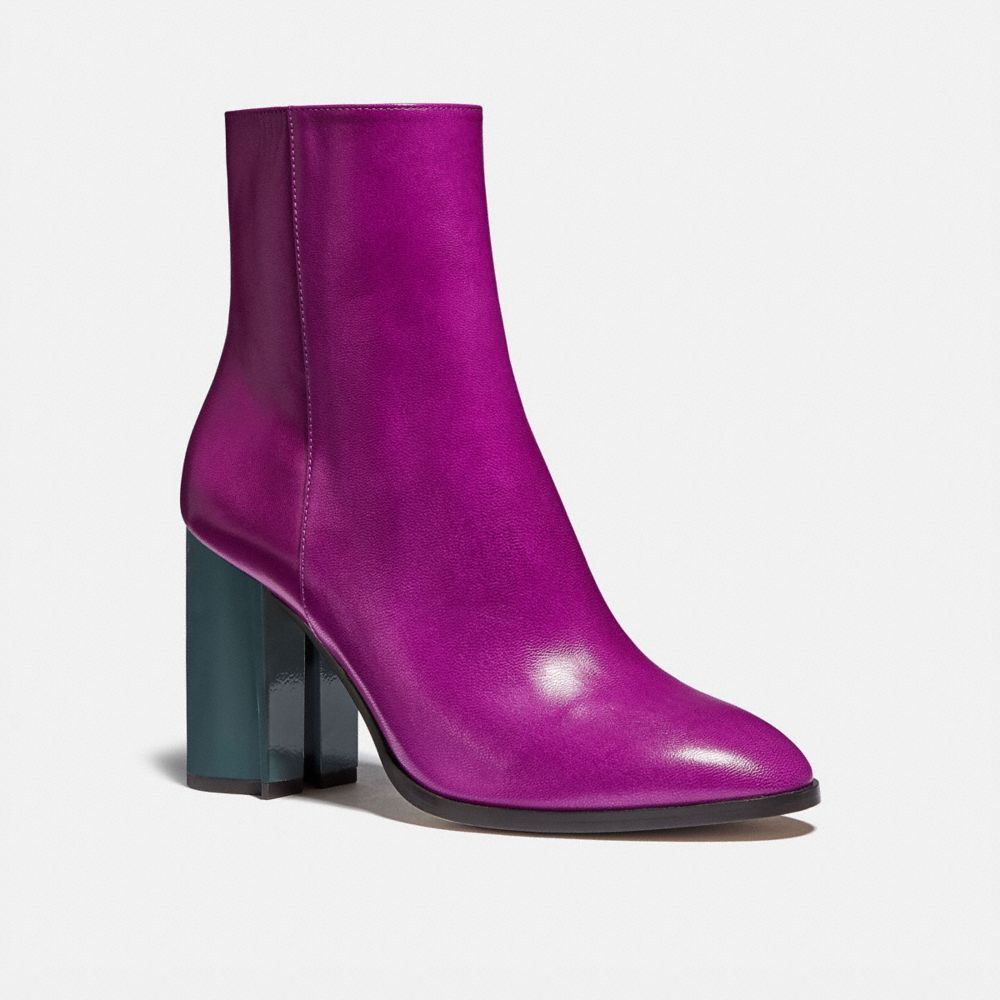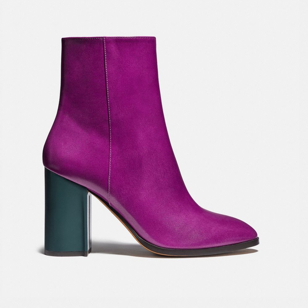 Leather upper| Man-made leather lining and footbed| Rubber outsole| Zip closure| Shaft: 5" height, 9 3/4" circumference| 3 1/2" heel