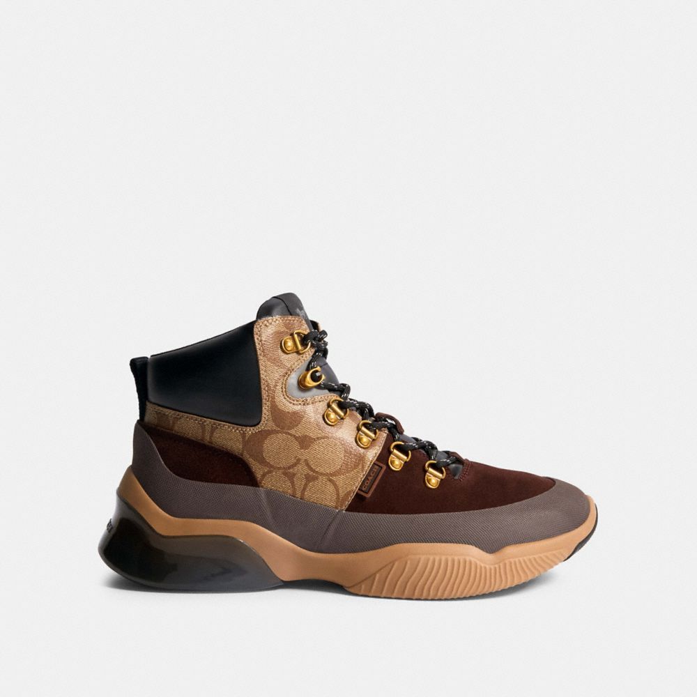 Signature coated canvas, suede, leather and rubber upper| Fabric lining and footbed| Rubber outsole| Lace-up closure