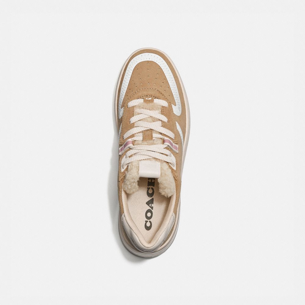 Suede and leather upper| Shearling detail| Fabric lining and footbed| Rubber outsole| Lace-up closure| Fit: Runs large, order 1/2 size down