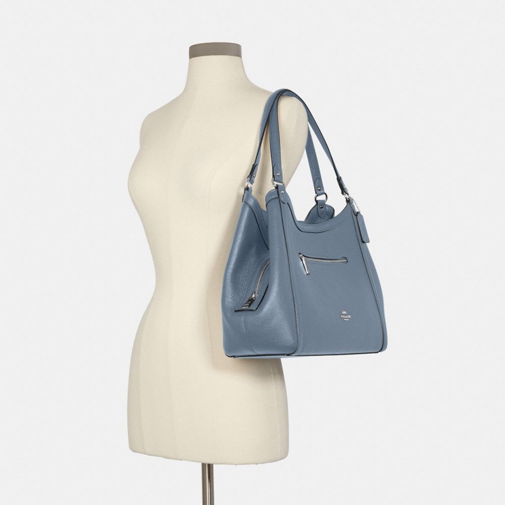 Refined pebble leather| Inside zip, cell phone and multifunction pockets| Center zip compartment| Snap closure, fabric lining| Handles with 9 1/2" drop| Outside zip pocket| 12 1/2" (L) x 10 3/4" (H) x 5 3/4" (W)Style No. C6231