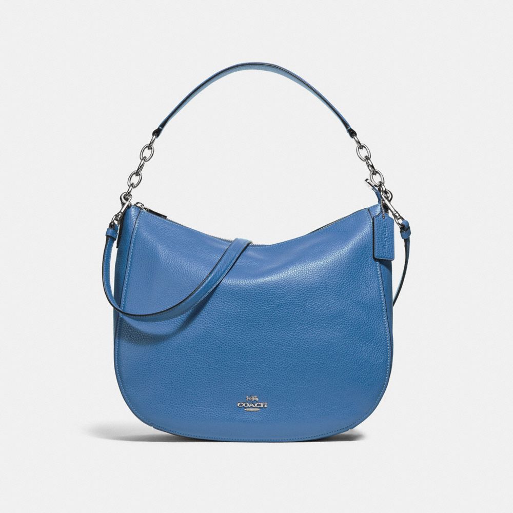 | Refined pebble leather| Inside cell phone and multifunction pockets| Zip-top closure, fabric lining| Handle with 8 3/4" drop| Outside zip pocket| Detachable strap with 15 1/4" drop for shoulder wear| 13" (L) x 10 3/4" (H) x 4" (W)