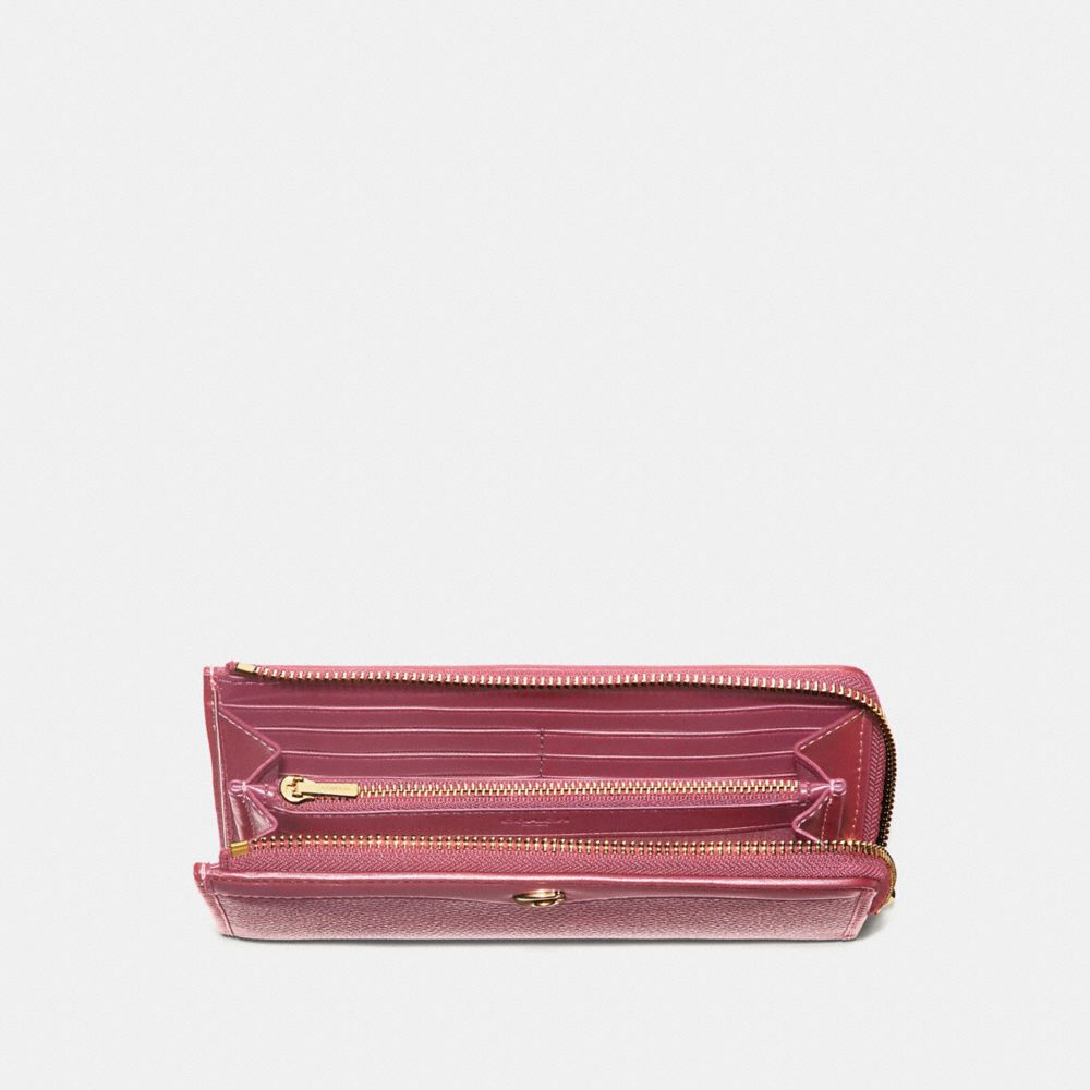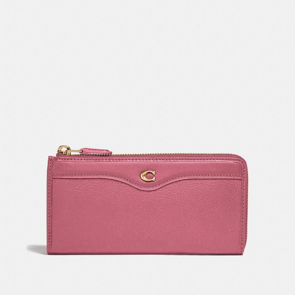 | Refined pebble leather and refined calf leather| 12 credit card slots| Full-length bill compartments| Zip coin pocket| Zip closure| 7 3/4" (L) x 3 3/4" (H) x 3/4" (W)