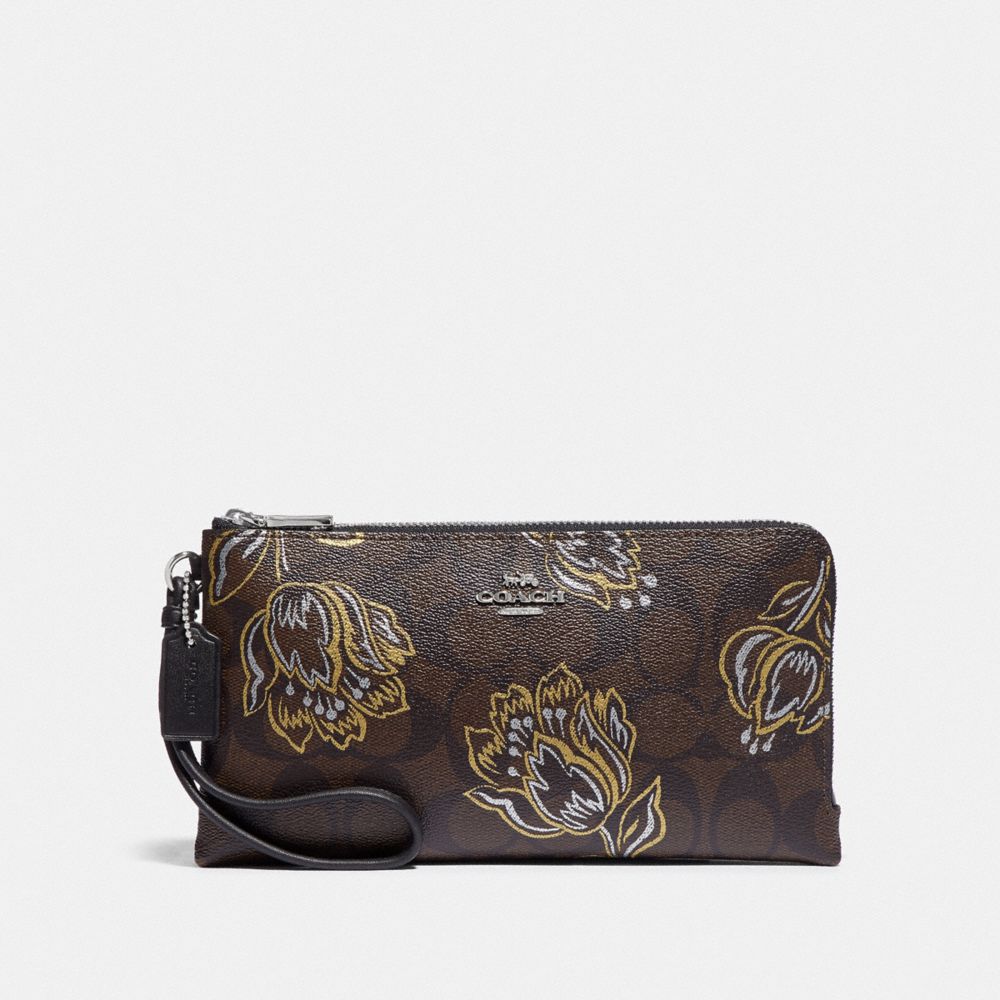 DOUBLE ZIP WALLET IN SIGNATURE CANVAS WITH TULIP PRINT