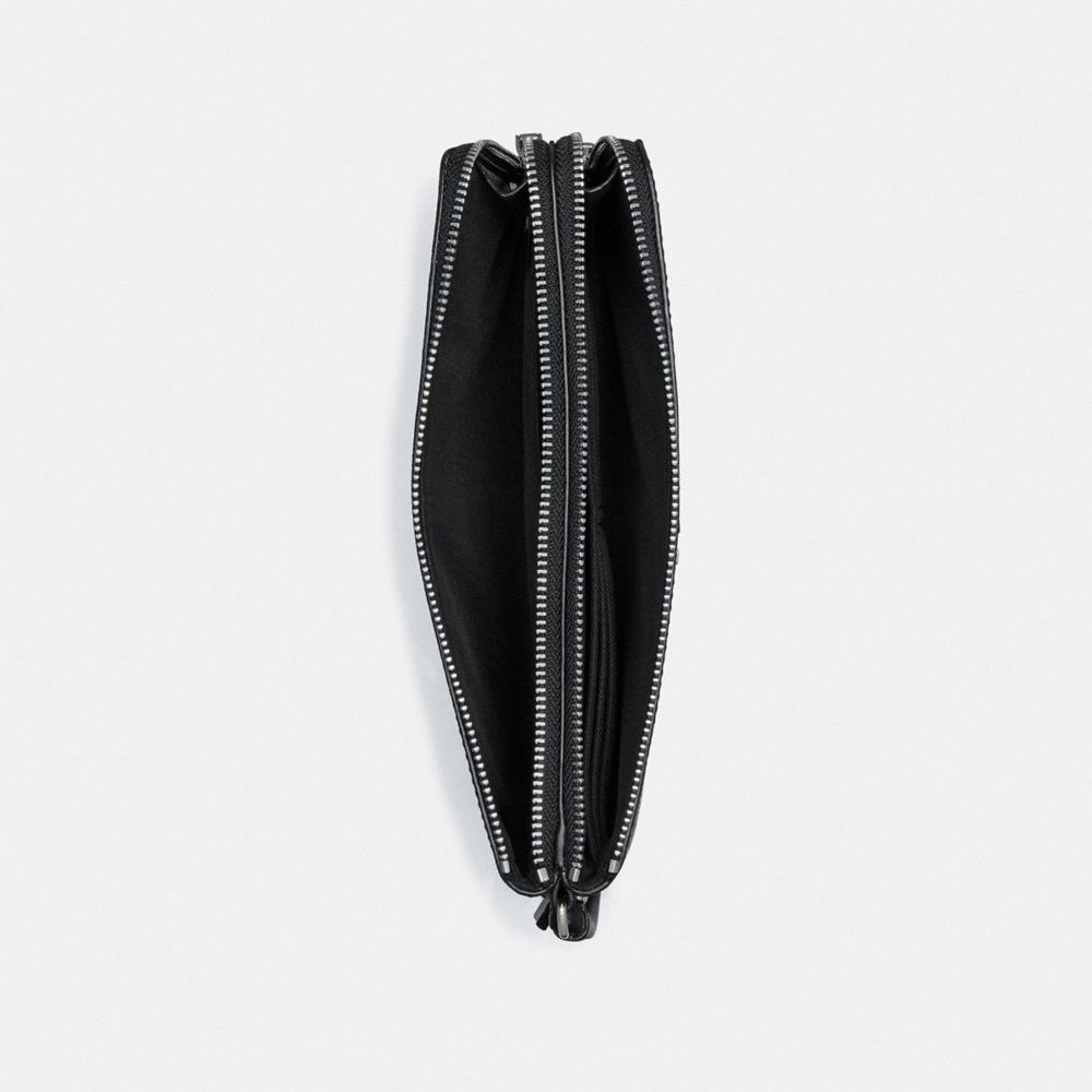 Signature coated canvas with smooth leather details| Six credit card slots| Full-length bill compartment| Inside open pockets| Double zip closure, fabric lining| Wrist strap attached| 8 1/2" (L) x 4 1/2" (H) x 1 1/4" (W)| Fits all phone sizes up to an iPhone X and Samsung S7 Edge