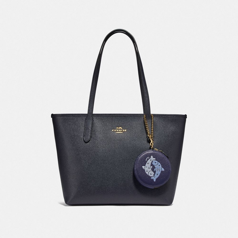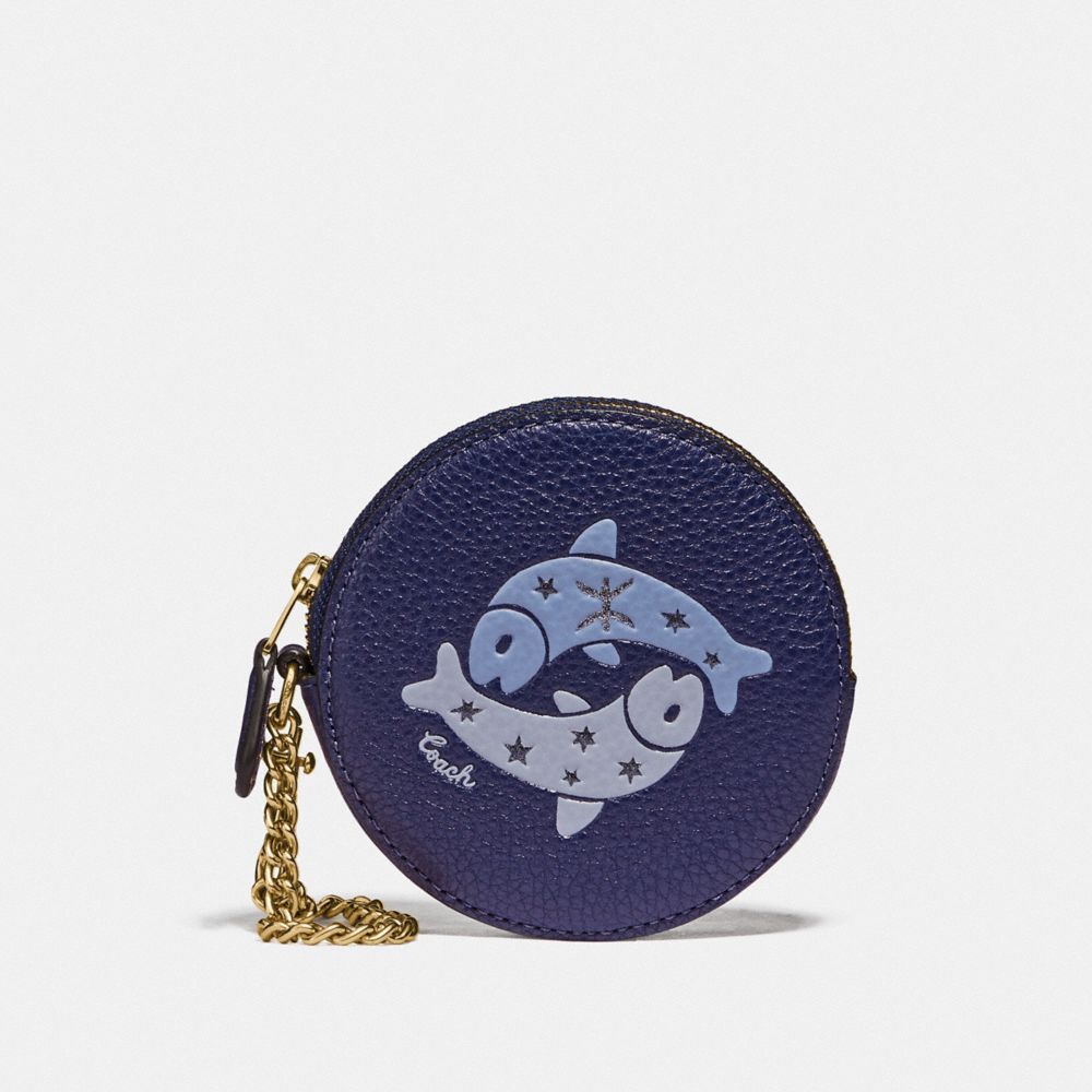 Refined pebble leather| Zip-around closure, fabric lining| Strap with dogleash clip attached| 4" (L) x 3 3/4" (H) x 3/4" (W)