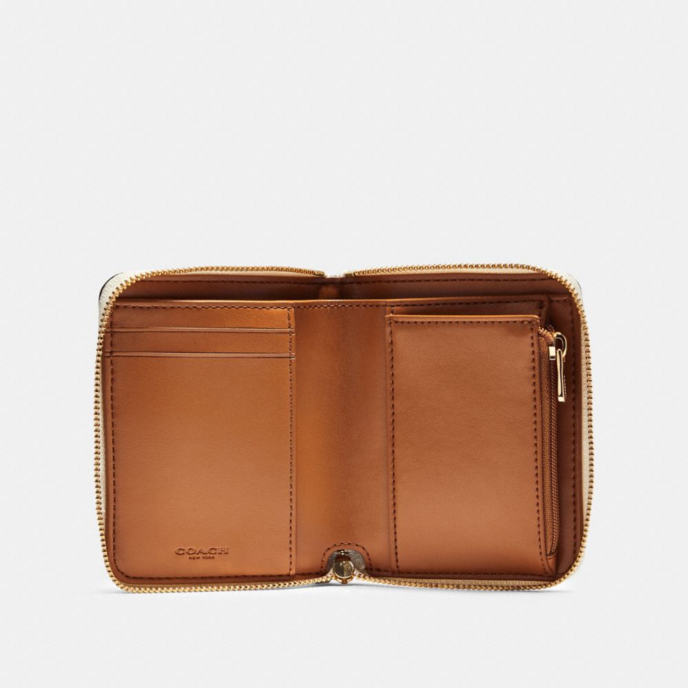 Printed coated canvas| Two credit card slots| Bill compartment| Zip coin pocket| Zip-around closure| 4 1/2" (L) x 3 3/4" (H) x 3/4" (W)
