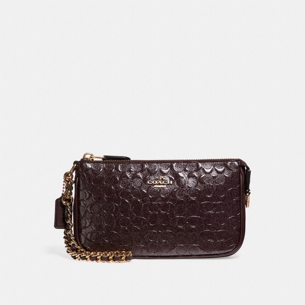 LARGE WRISTLET 19 IN SIGNATURE DEBOSSED PATENT LEATHER