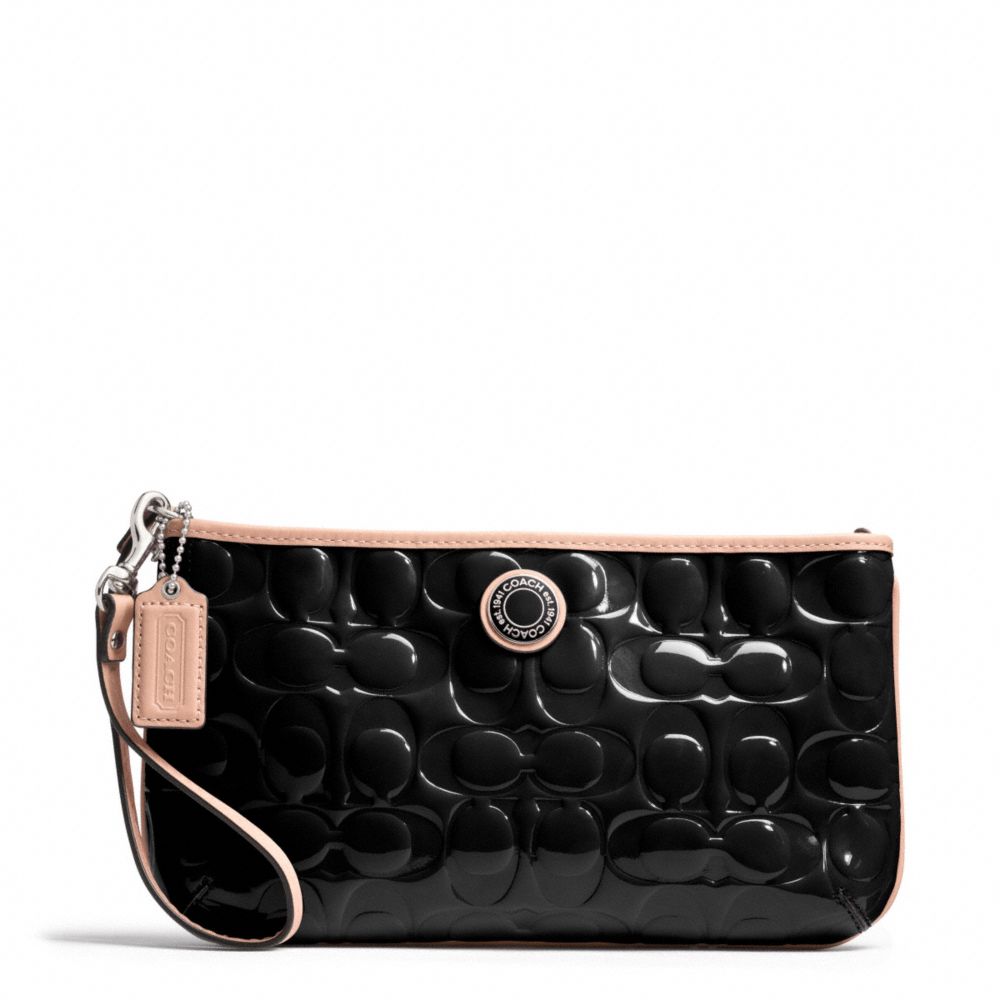 SIGNATURE STRIPE EMBOSSED PATENT LARGE WRISTLET