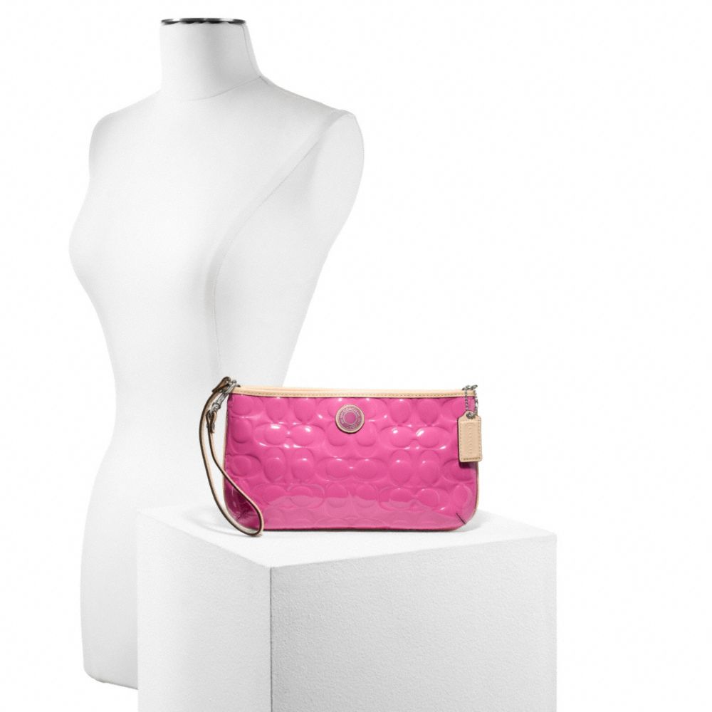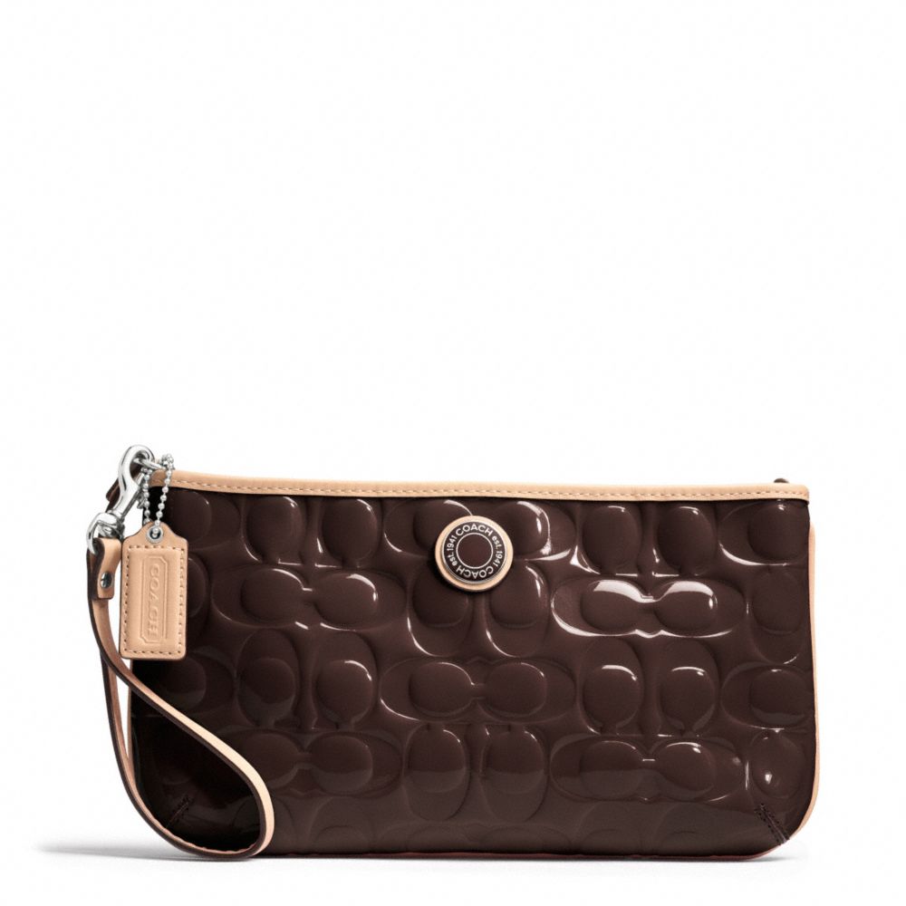 SIGNATURE STRIPE EMBOSSED PATENT LARGE WRISTLET