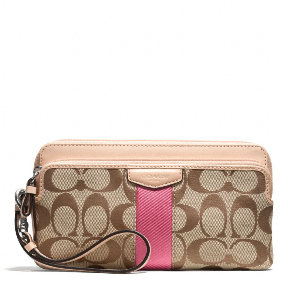 SIGNATURE STRIPE 12CM DOUBLE ZIP WALLET