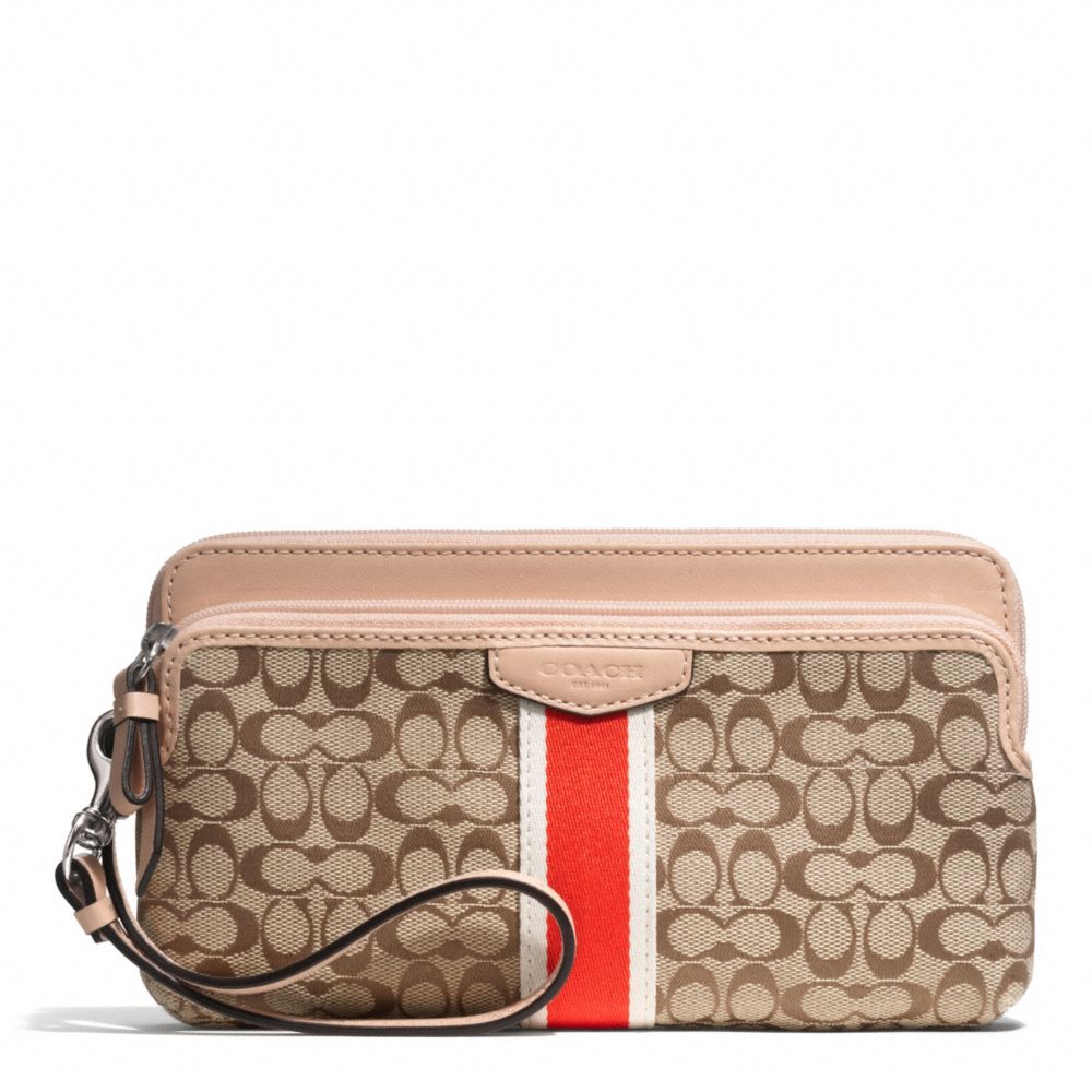 SIGNATURE STRIPE 6CM DOUBLE ZIP WALLET