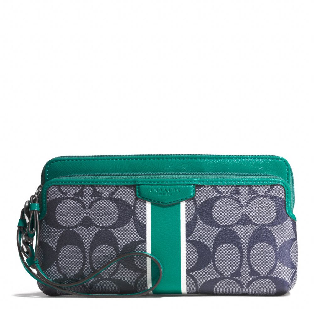 SIGNATURE STRIPE DOUBLE ZIP WALLET
