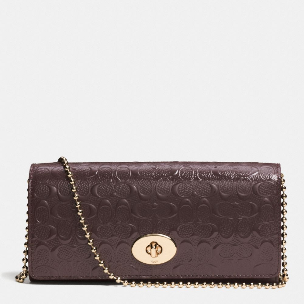 SLIM ENVELOPE ON CHAIN IN LOGO EMBOSSED PATENT LEATHER