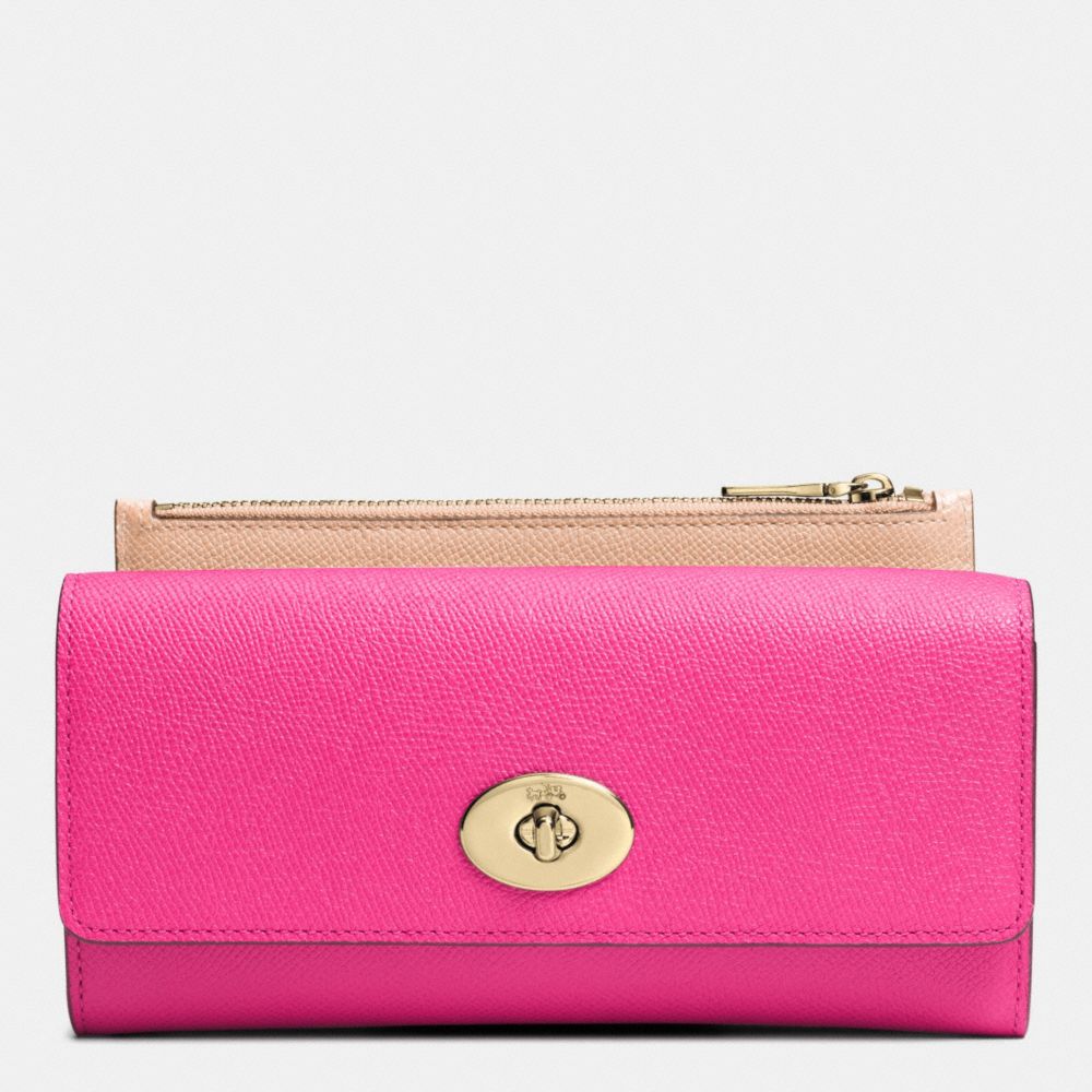 SLIM ENVELOPE WALLET WITH POP-UP POUCH IN EMBOSSED TEXTURED LEATHER