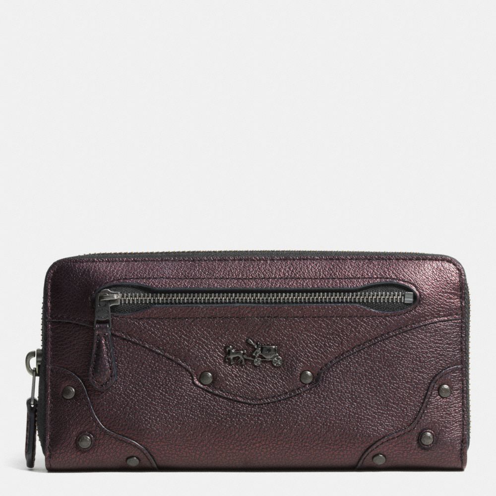 RIVETS ACCORDION ZIP AROUND WALLET IN LEATHER