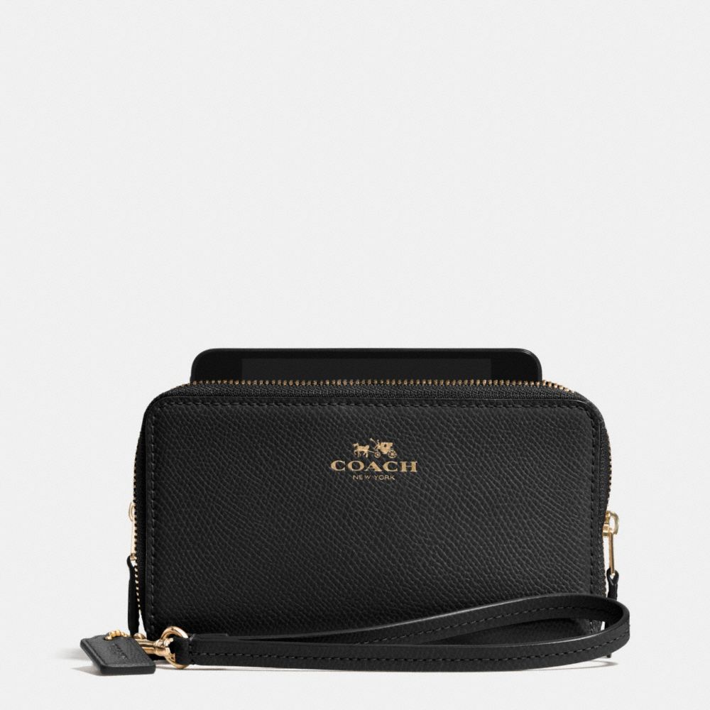 DOUBLE ZIP PHONE WALLET IN CROSSGRAIN LEATHER