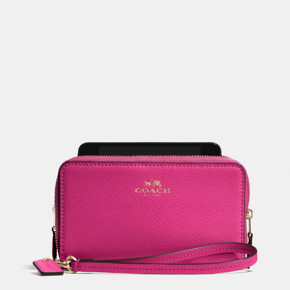 DOUBLE ZIP PHONE WALLET IN CROSSGRAIN LEATHER