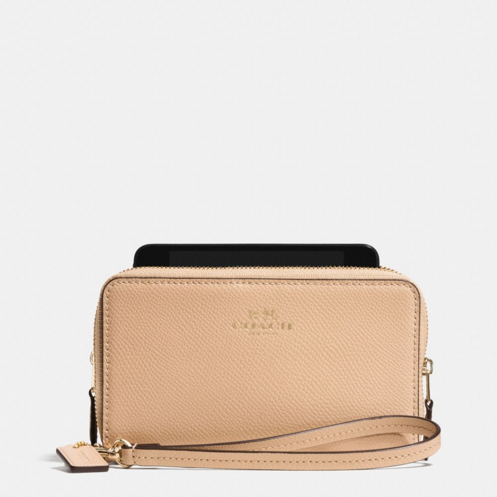 DOUBLE ZIP PHONE WALLET IN CROSSGRAIN LEATHER