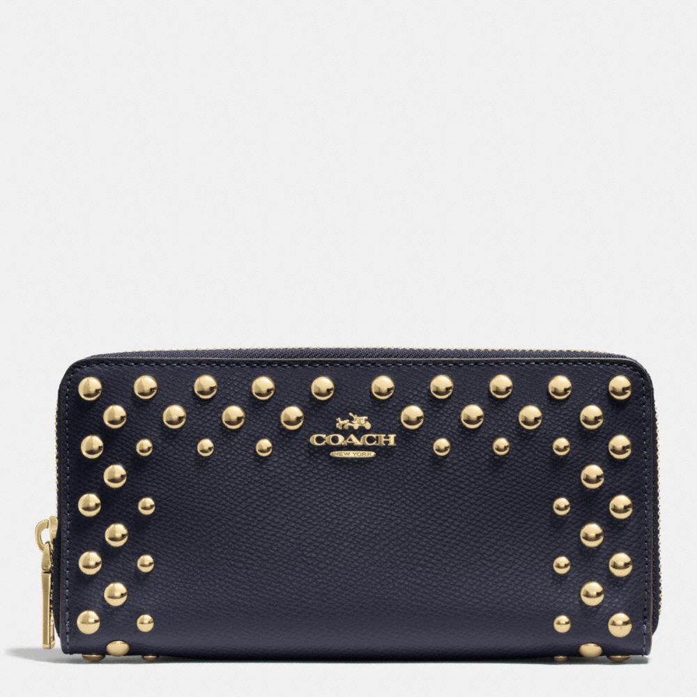 ACCORDION ZIP WALLET IN STUDDED CROSSGRAIN LEATHER