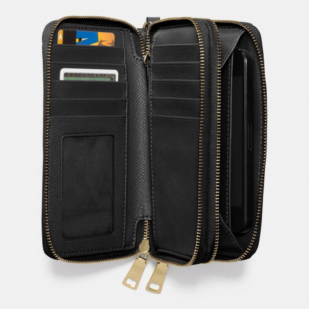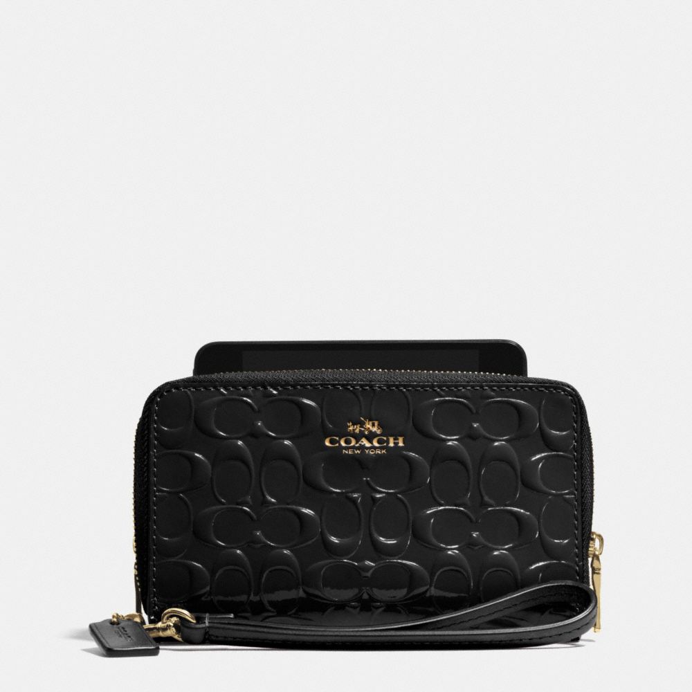 DOUBLE ZIP PHONE WALLET IN SIGNATURE DEBOSSED PATENT LEATHER