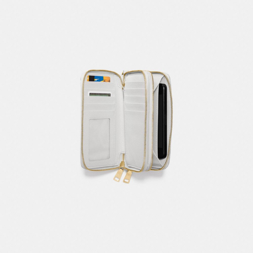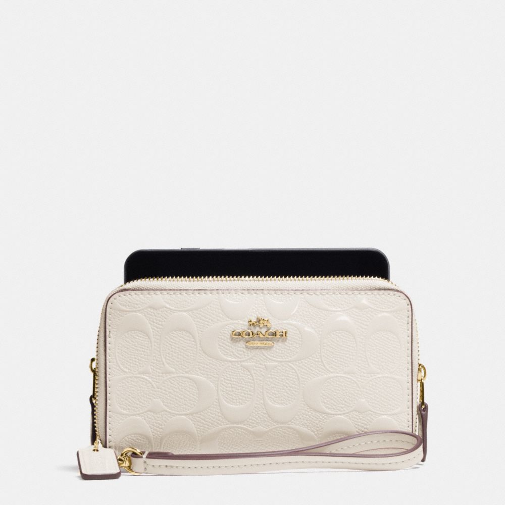 DOUBLE ZIP PHONE WALLET IN SIGNATURE DEBOSSED PATENT LEATHER