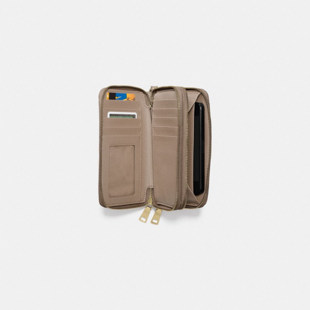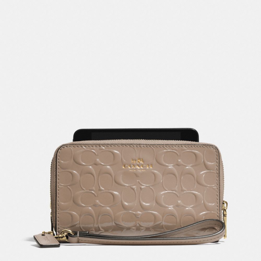 DOUBLE ZIP PHONE WALLET IN SIGNATURE DEBOSSED PATENT LEATHER