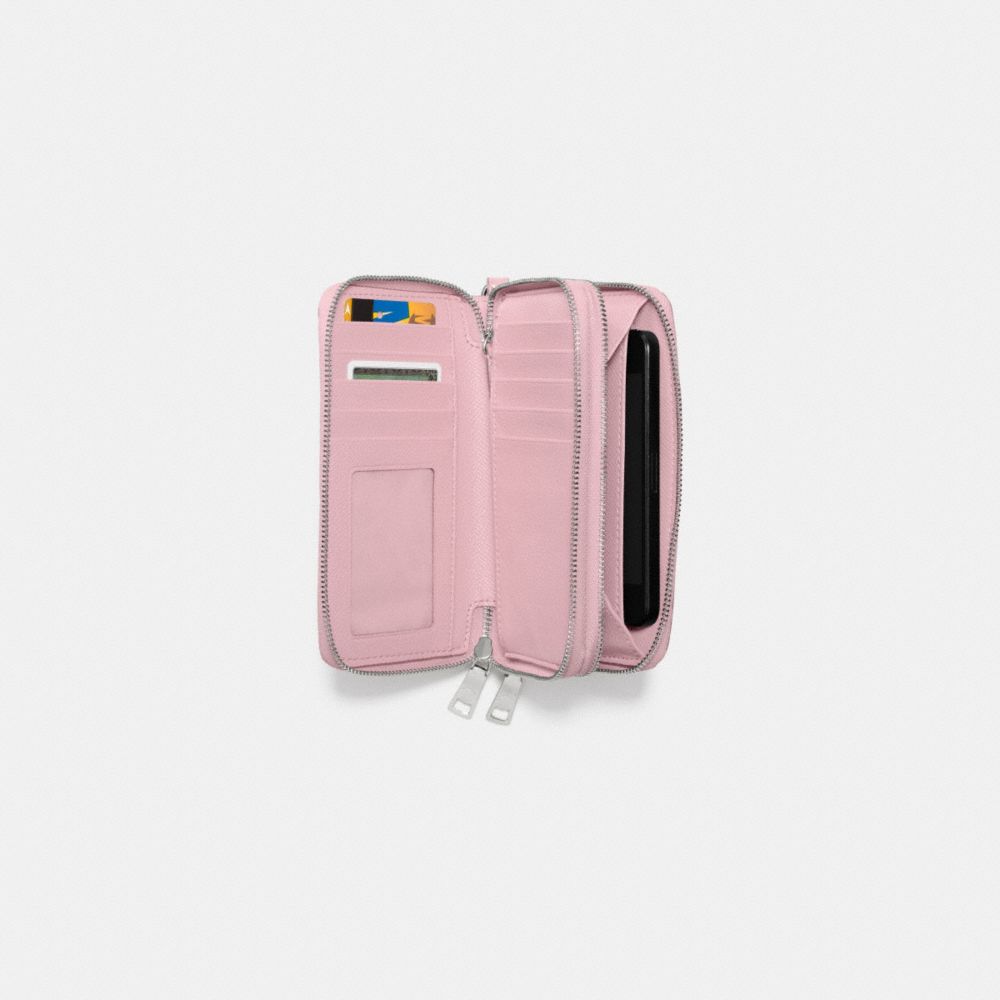 DOUBLE ZIP PHONE WALLET IN SIGNATURE DEBOSSED PATENT LEATHER