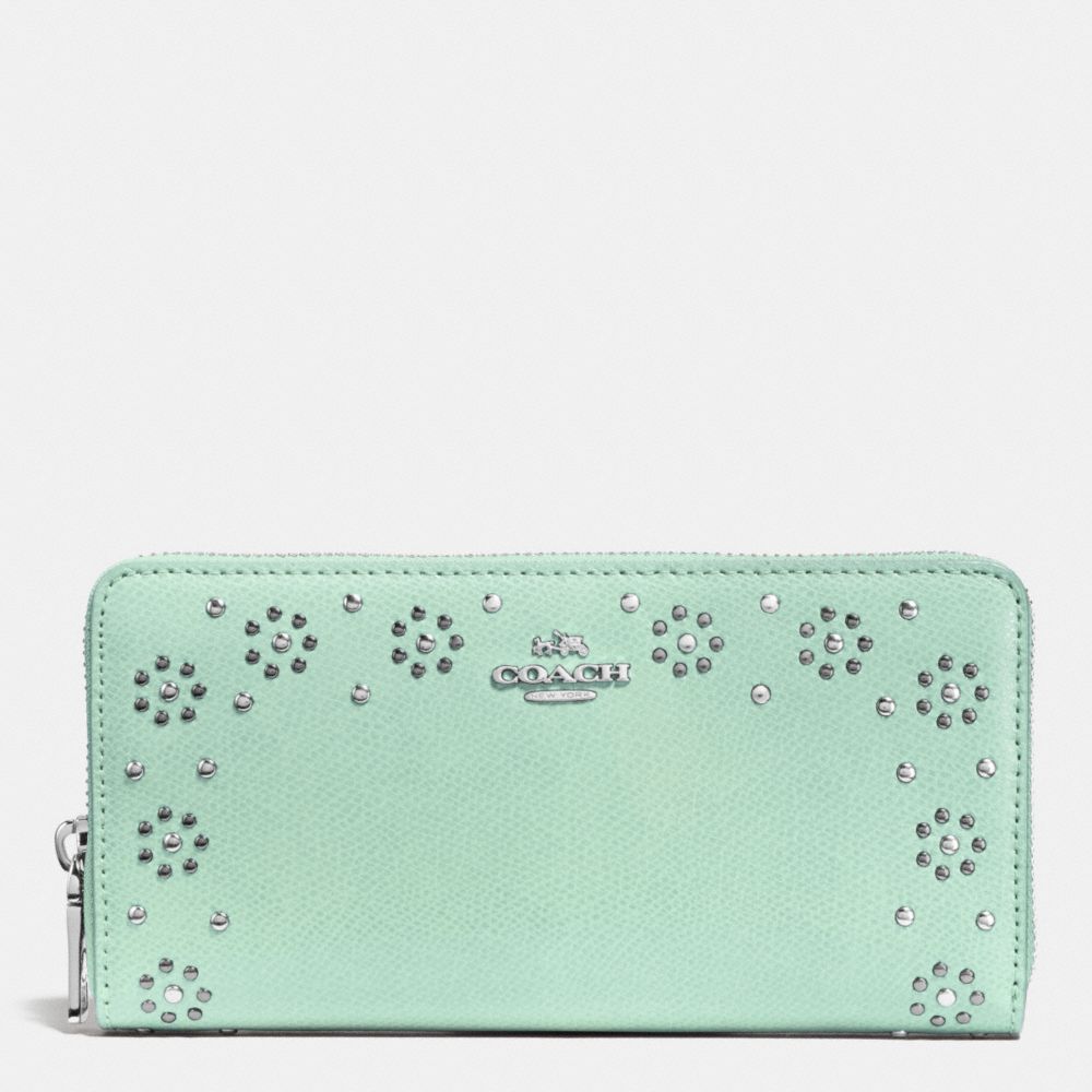 BORDER STUD ACCORDION ZIP WALLET IN LEATHER